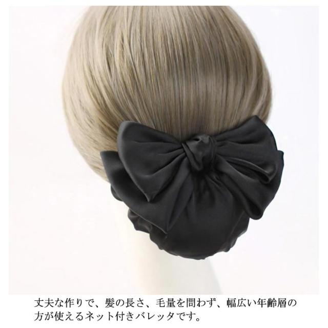 | 【お団子ネット】カバーがネットを包み込むような優れたデザインになります。ネット部分の伸縮性はとてもいい、13センチ以上へ伸びますので、不器用でもすぐ落ち着きのあるまとめ髪に仕上げることができます!後ろに束ねた髪がバレッタのネットの中に収まり、カバーは中のお団子をしっかり隠れて、きちんと感が断然アップ!丈夫な作りで、髪の長さ、毛量を問わず、幅広い年齢層の方が使えるネット付きバレッタです。 【シニヨンネット】バレッタの部分も、ただの金属だけではなく、滑り止めの加工がされており、スタイルがキープされます!丈夫な作りで、剛毛もしっかり収まってくれます。毛先の色も隠れます。 【髪留め】シンプルの中にリボン飾りがおしゃれ。ちょうどいい大きさで、つけても大げさにならず、上品におさまってくれます。余分な装飾がないのでオフィスやお仕事、冠婚葬祭でも活躍します。 【ネット付きバレッタ】フォーマルにも使えるデザインで、就職活動や髪をまとめないといけない職場での必須アイテム。お役立ちまちがいなし!入学式・卒業式、七五三、成人式、冠婚葬祭、初詣、ダンスの練習に、茶道のおけいこ、和装にも似合います。 | |