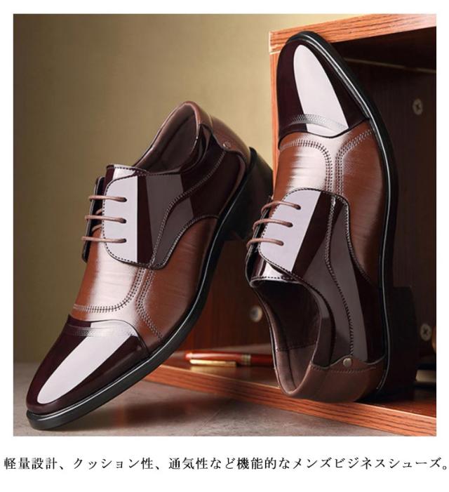 ビジネスシューズ メンズ 紳士靴 革靴 合成皮革 疲れない 走れる ゴム底 防滑ソール 通気 防臭 履きやすい ビジネス 仕事 通勤 就活 結婚式 冠婚葬祭 靴 軽量 おしゃれ 男性 滑りにくい 幅広 ゆったり フォーマル ウォーキング 黒 ブラック ブラウン