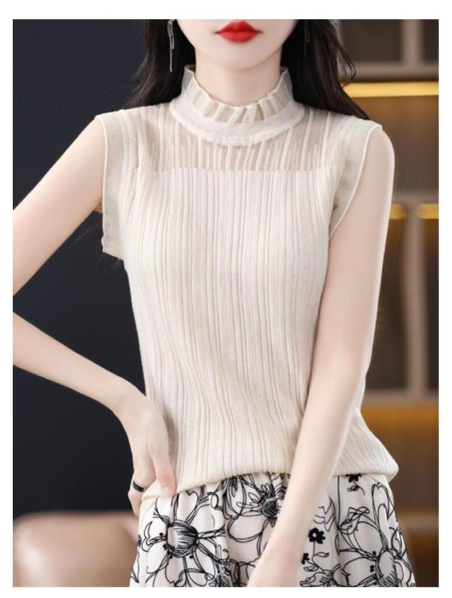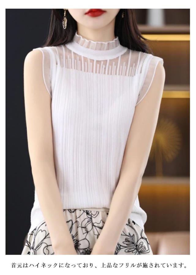ノースリーブ ハイネック ニット トップス ベスト シアートップス タンクトップ 透け感 インナー レイヤード 春夏 秋 春秋 重ね着 ニット 薄手 送料無料 シースルー 通勤 OL 女性