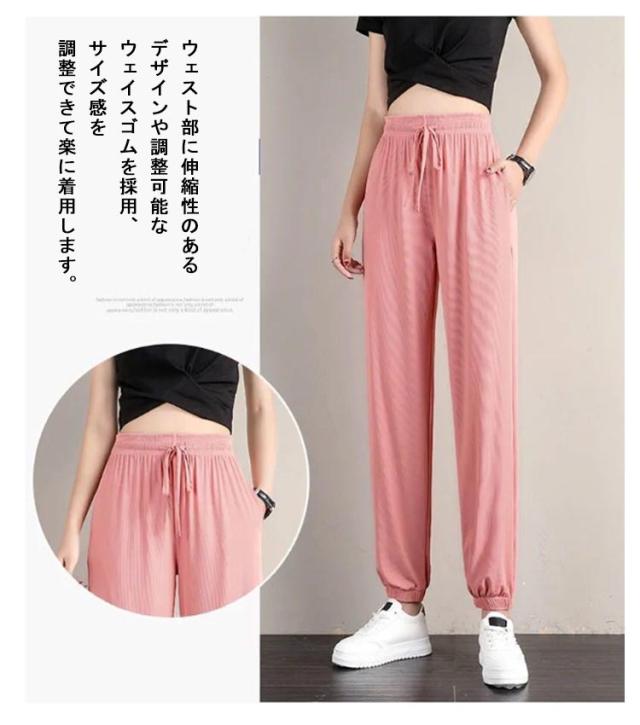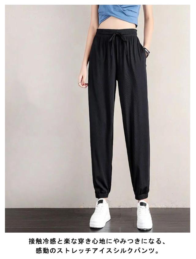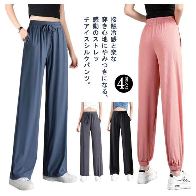 【送料無料】接触冷感 パンツ レディース ジャージ アイスシルクパンツ 冷感パンツ ひんやり 通気性 涼しい 薄手 スウェットパンツ ジョガーパンツ ワイドパンツ イージーパンツ ウエストゴム ゆったり レディース ボトムス パンツ