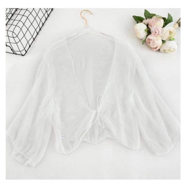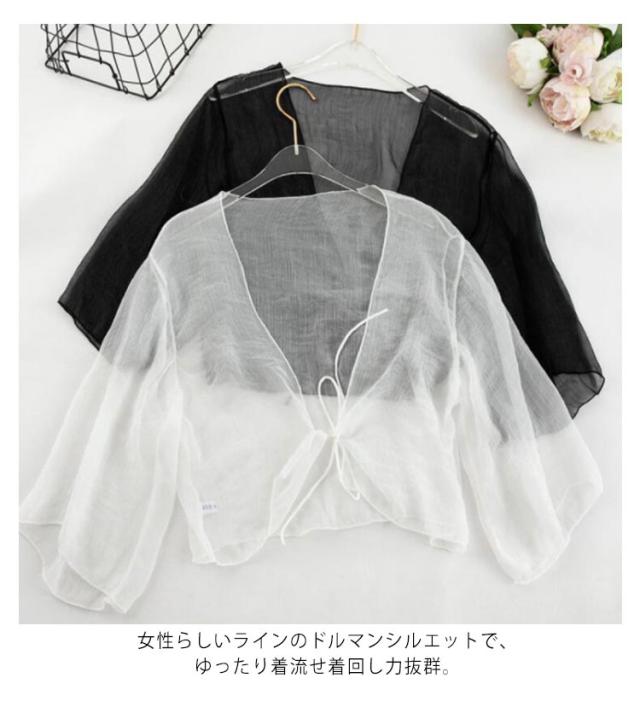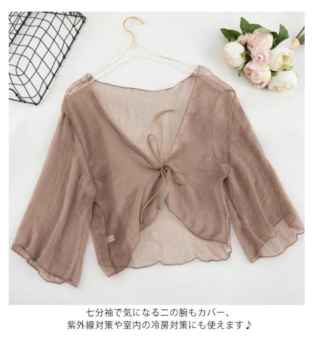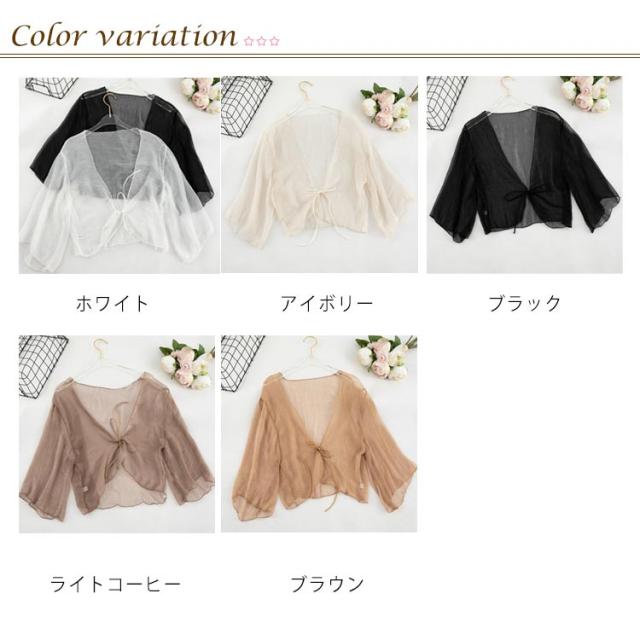 サマーカーディガン ボレロ 半袖 カーディガン 透け感 シフォン ショート丈 UVカット かわいい おしゃれ シアー レディース 冷え防止 冷房 紫外線対策 羽織 春 夏 秋 リボン 薄手 シンプル 無地 エアコン対策 冷房対策 カジュアル きれいめ フリーサイズ 送料無料