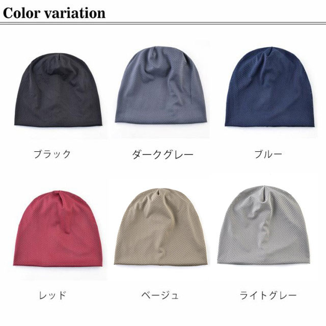 | オールシーズン使えて、夏でも快適にお過し頂ける帽子です。 メッシュ生地で通気性抜群、さわやかなかぶり心地です。 伸縮性がありますので、様々な頭のサイズにフィットします。 吸水速乾機能に優れたた、春夏のジョッギングなどで汗をかいても吸収されます。 軽く手かさばらないので被らない時はカバンに入るので持ち運びも便利。 医療用ケアでも、普段着にもOKのおしゃれなデザインです。 | |