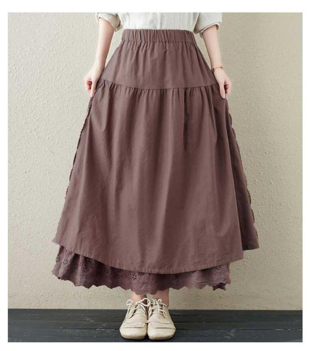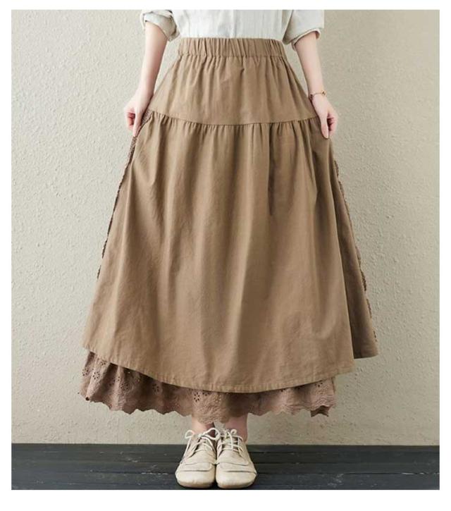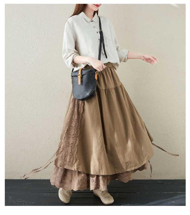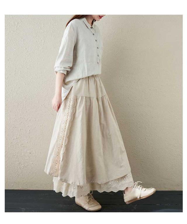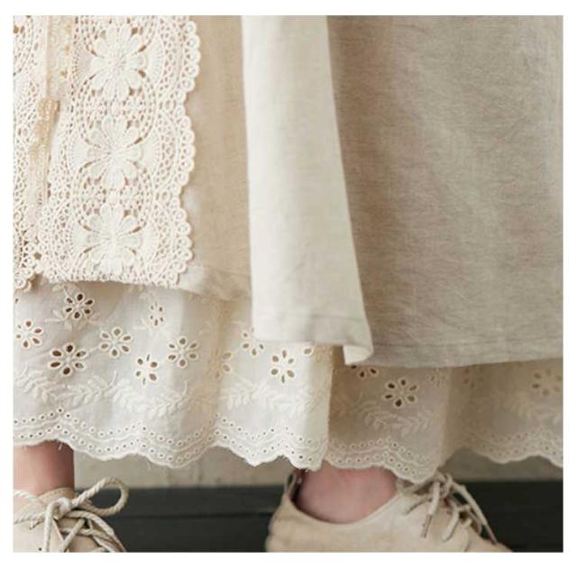 レイヤード風 スカート 刺繍 リネン スカート ロングスカート フレアスカート マキシスカート 春夏 リネンスカート ウエストゴム マキシ丈 ロング丈 ナチュラル Aライン 体型カバー M L XL 2XL