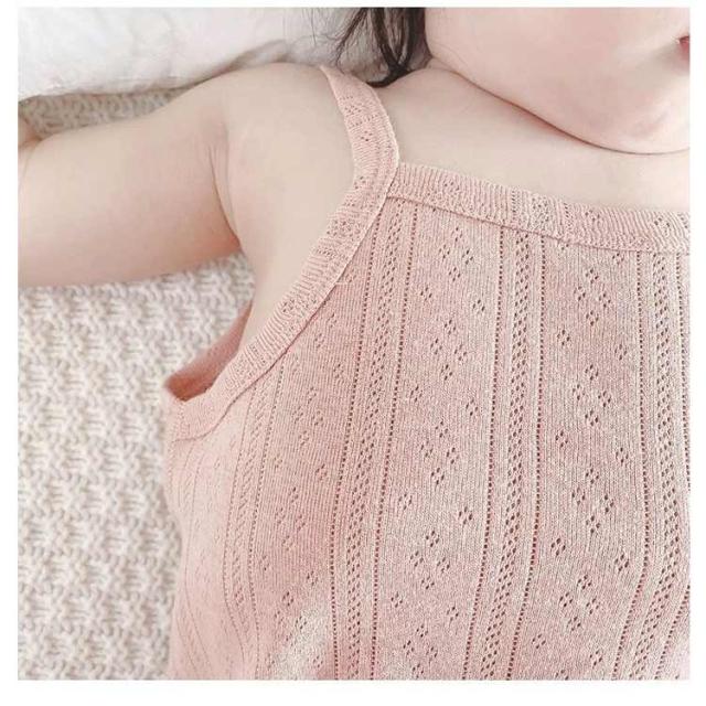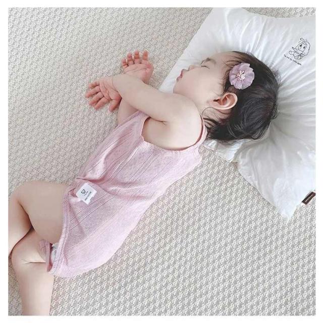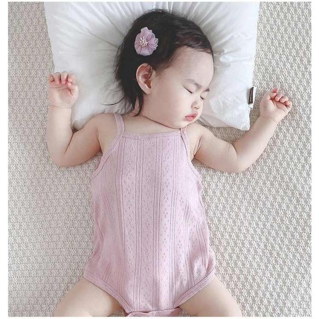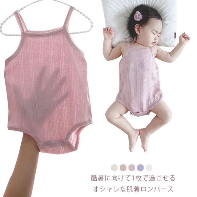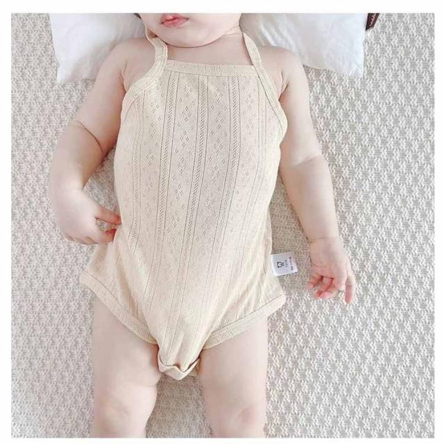 ロンパース べビー キャミソール インナー 綿 コットン薄手 柔らかい ベビー服 女の子 男の子 可愛い 赤ちゃん肌着 通気 ベビー肌着 新生児 ベビーロンパース キャミロンパース 透かし編み 無地 出産準備 出産祝い ギフト プレゼント 送料無料 ナチュラル