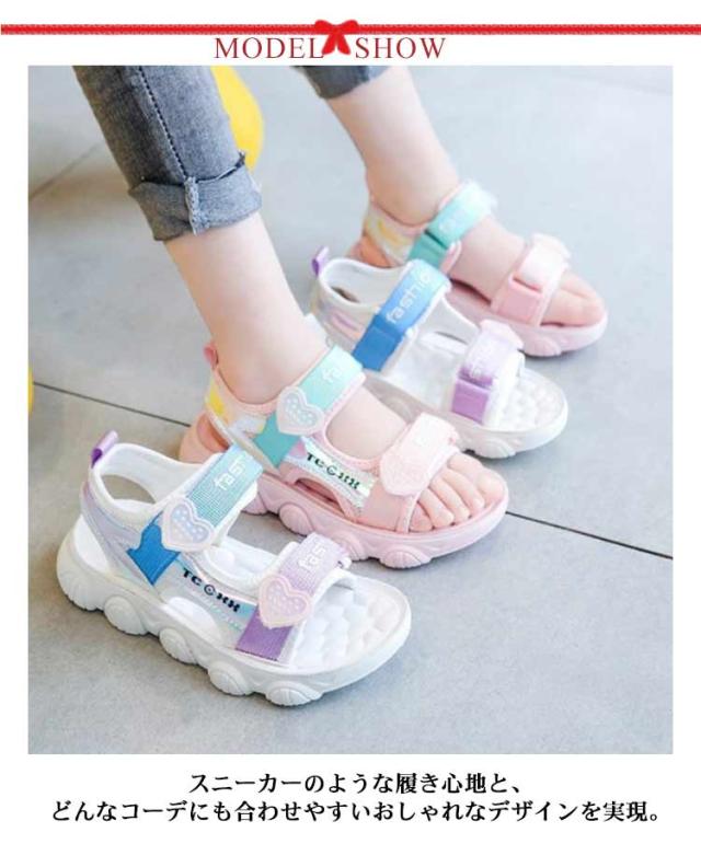 キッズ サンダル 女の子 スポーツサンダル ビーチサンダル 子供 夏 スポサン ジュニア かわいい おしゃれ 歩きやすい ガールズ 子ども こども 子供サンダル 女の子サンダル 女児サンダル 厚底 シューズ 靴 アウトドア 滑り止め 通気性 屈曲性 送料無料