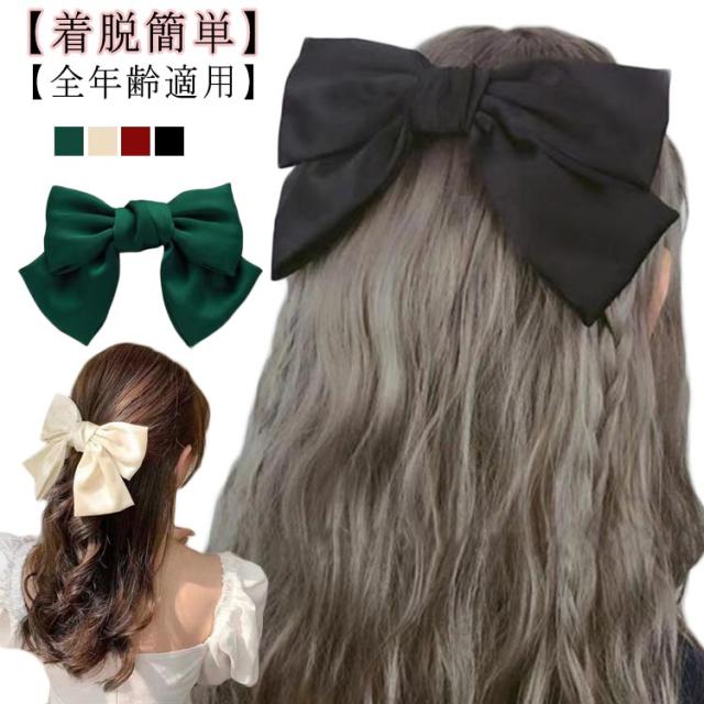 蝶結び 髪飾り リボン ヘアピン 大きめ かわいい エレガント 親子セット かみアクセサリー 全年?使用 入学式 結婚式 卒業式 ゴスロリ お姫様 お茶会 デート lolita 黒 赤 白 ダークグリーン
