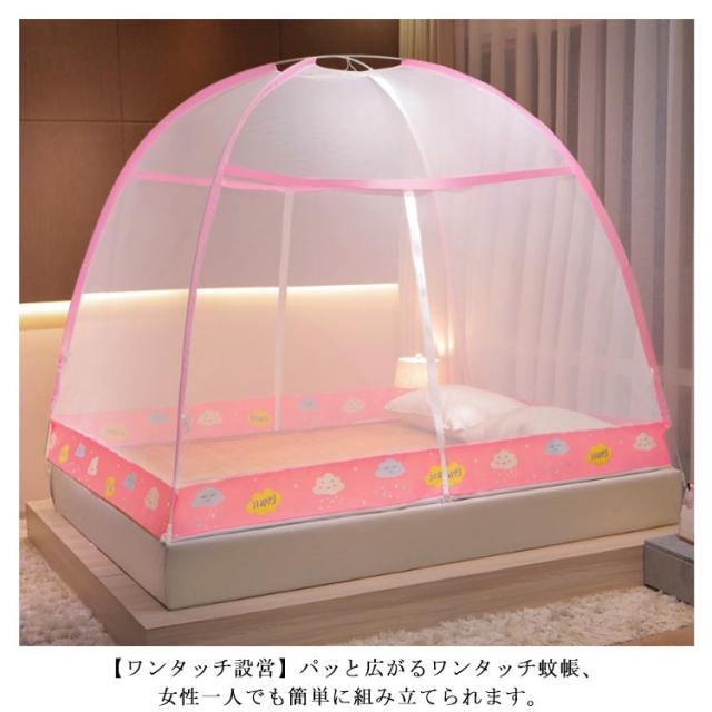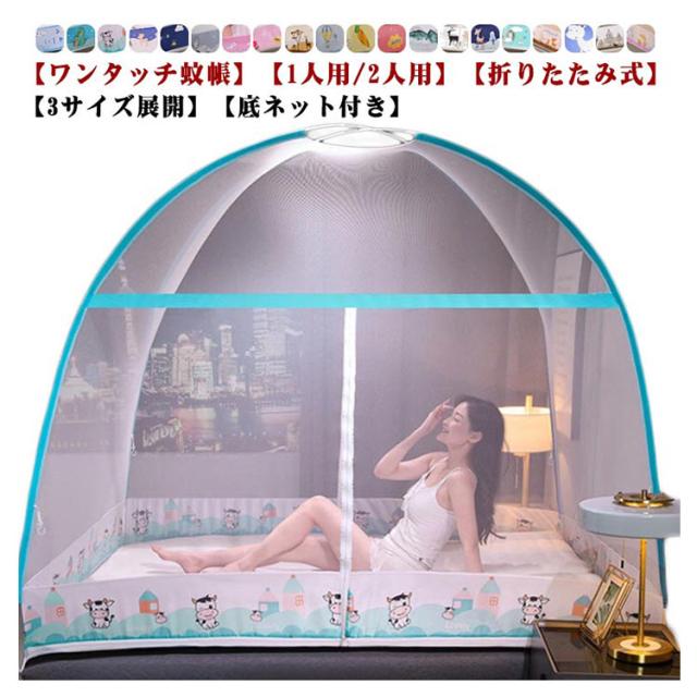 ワンタッチ蚊帳 1人用/2人用 蚊帳 シングル ダブル 軽量 ワンタッチ ベッド用 蚊帳テント モスキートネット かや 睡眠 安眠 蚊 ムカデ 防止 快適 夏 寝室 キッズ 底ネット 底付き 簡単収納 テントワンタッチ ドーム 蚊帳 カヤ 虫刺され防止 折りたたみ式 送料無料