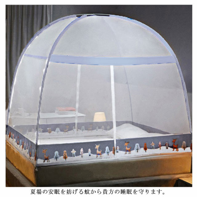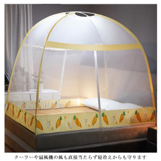 | 【ワンタッチ設営】パッと広がるワンタッチ蚊帳、女性一人でも簡単に組み立てられます。 【360度全方位カバー】底面までメッシュがある全方位タイプ ムカデやゴキなどの害虫の侵入を防ぎます。 【大きい出入り口】出入り口が2箇所があります、大きいので出入りや布団の出し入れも簡単です。 コンパクトに収納でき、且つ簡単に設置出来る大変便利な蚊帳です。 クーラーや扇風機の風も直接当たらず寝冷えからも守ります 夏場の安眠を妨げる蚊から貴方の睡眠を守ります。 風通しも良く、エアコンや扇風機の風も爽やかに感じられます。 蚊取り線香のニオイや、電子蚊捕り器が苦手な方には最適です。 | |