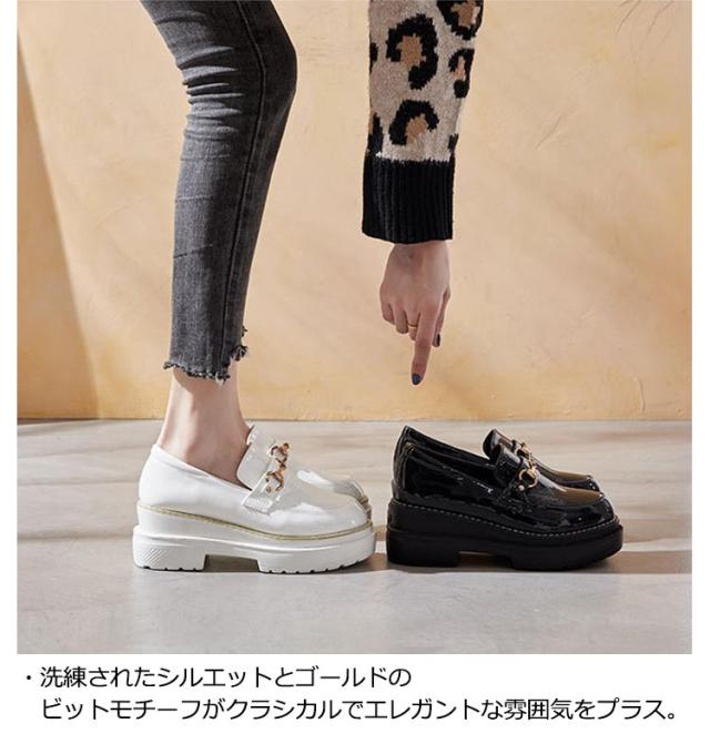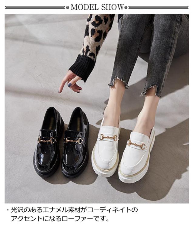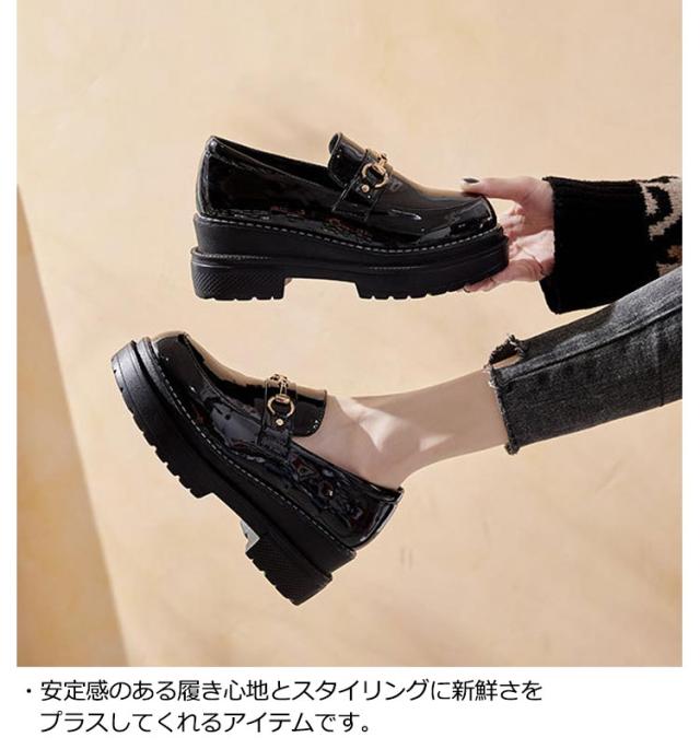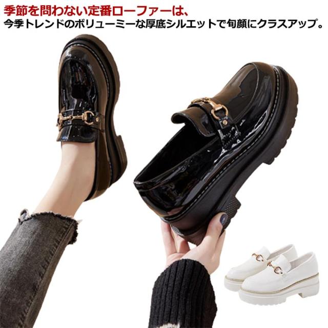 厚底 ローファー パンプス ローヒール レディース ビット 飾り 歩きやすい 履きやすい 疲れない 痛くない トレンド 7cmヒール プラットフォーム 春夏 通勤 通学 革靴 エナメル ハレの日 可愛い おしゃれ きれいめ カジュアル 合皮 全2色