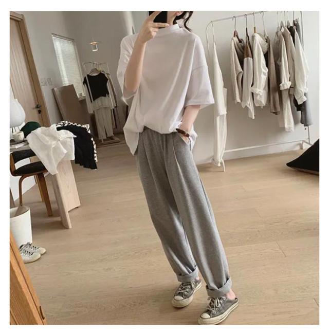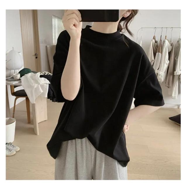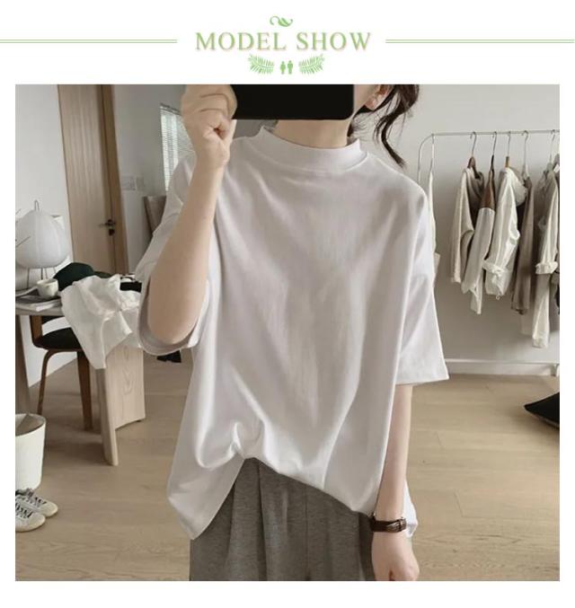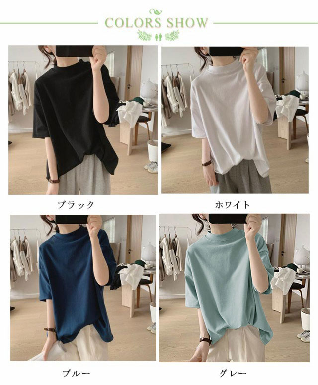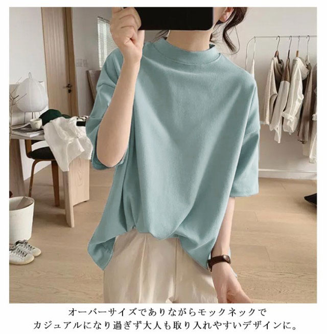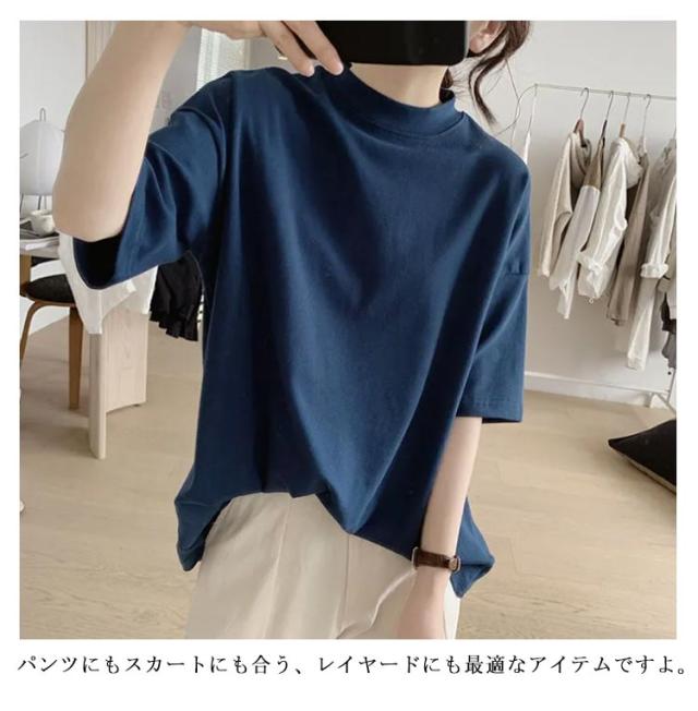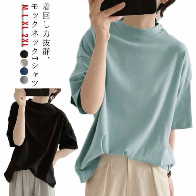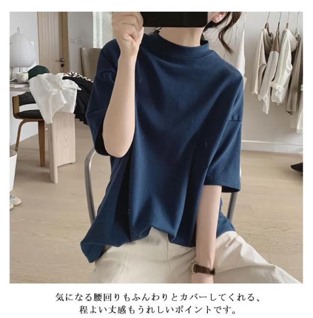 モックネック Tシャツ トップス プルオーバー レディース 半袖 Tシャツ オーバーサイズ 無地 ハイネック tシャツ 綿 コットン ビッグシルエット 大きいサイズ ゆったり 体型カバー カジュアル 春夏 送料無料