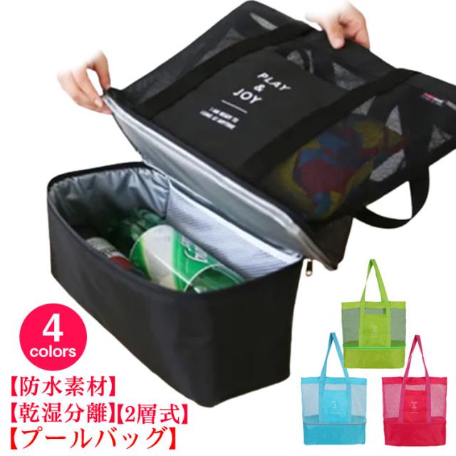 プールバッグ 2層式 乾湿分離 トートバック ビーチバッグ おしゃれ スイムバッグ プール 水泳 スイミング バッグ 半透明 ブラック 黒 軽量 水泳バッグ スイミングバッグ 水着 スポーツバッグ 大容量 子供 大人 女の子 男の子 キッズ レディース メンズ