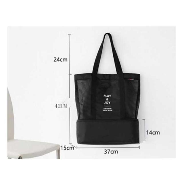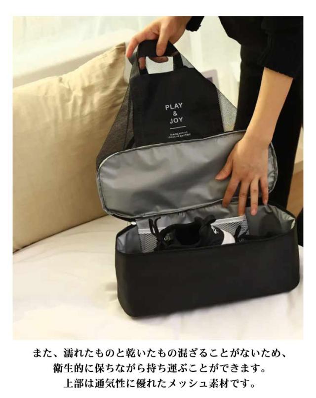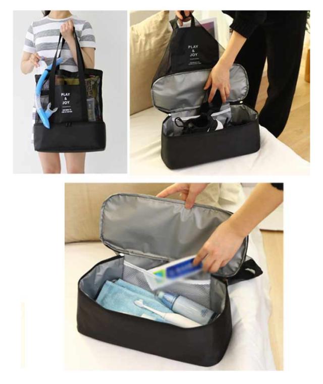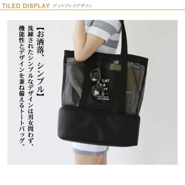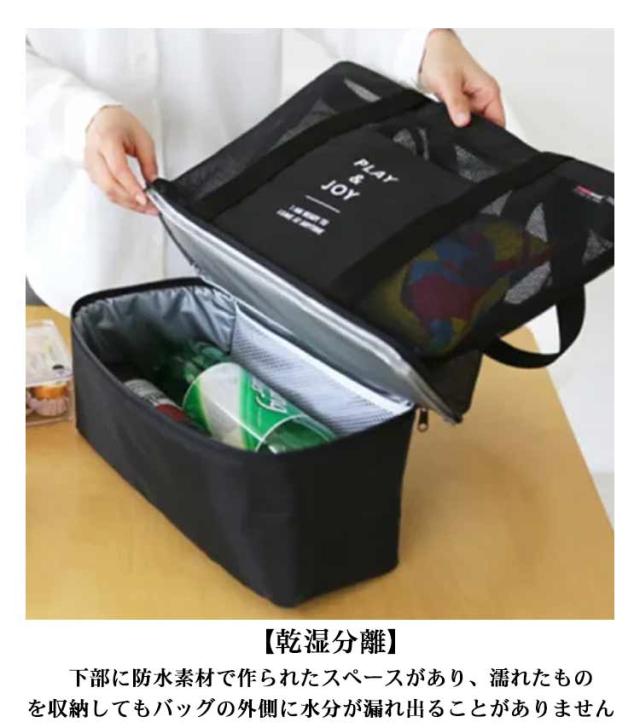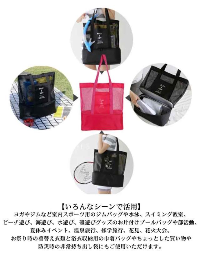 | 【乾湿分離】下部に防水素材で作られたスペースがあり、濡れたものを収納してもバッグの外側に水分が漏れ出ることがありません。また、濡れたものと乾いたもの混ざることがないため、衛生的に保ちながら持ち運ぶことができます。上部は通気性に優れたメッシュ素材です。 【お洒落、シンプル】洗練されたシンプルなデザインは男女問わず、機能性とデザインを兼ね備えるトートバッグ。 【いろんなシーンで活用】ヨガやジムなど室内スポーツ用のジムバッグや水泳、スイミング教室、ビーチ遊び、海遊び、水遊び、磯遊びグッズのお片付けプールバッグや部活動、夏休みイベント、温泉旅行、修学旅行、花見、花火大会、お祭り時の着替え衣類と浴衣収納用の巾着バッグやちょっとした買い物や防災時の非常持ち出し袋にもご使用いただけます。 | |