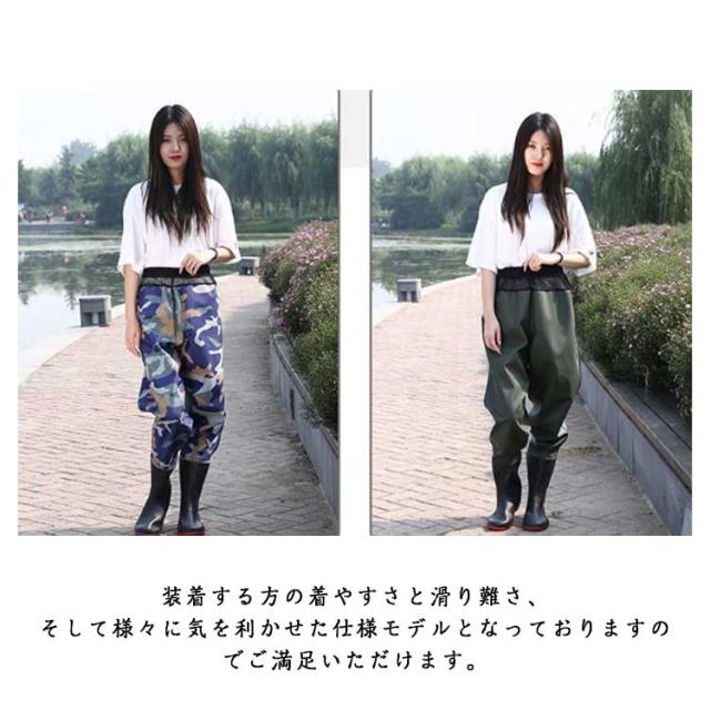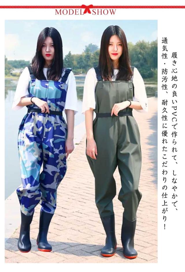 PVC ウェーダー チェストハイウェーダー 胴付長靴 胴長靴 作業用 農作業 漁業 田畑仕事 迷彩柄 無地 渓流 釣り フィッシング 水産長靴 長靴 胴付き 水産 作業服 水中作業 防水 防水服 カーキ レディース メンズ 大きいサイズ