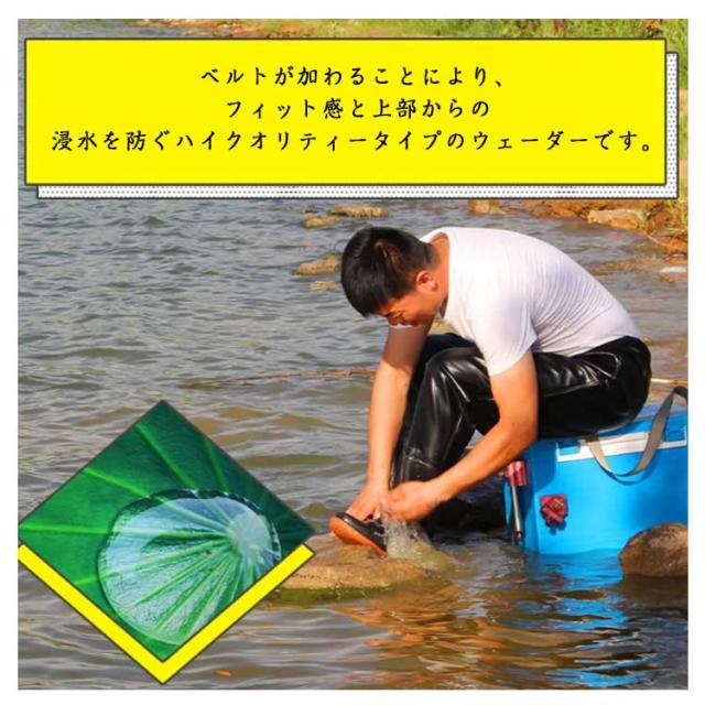 | ベルトが加わることにより、フィット感と上部からの浸水を防ぐハイクオリティータイプのウェーダーです。 身近に持っていたい小物が入れられる胸ポケットが付きで、大変便利です。 四季を問わず、水辺の趣味や仕事に大活躍。 履き心地の良いPVCで作られて、しなやかで、通気性・防汚性、耐久性に優れたこだわりの仕上がり! 装着する方の着やすさと滑り難さ、そして様々に気を利かせた仕様モデルとなっておりますのでご満足いただけます。 | |