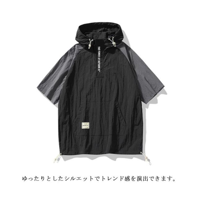 アノラック パーカー メンズ ハーフジップ パーカー ナイロン 半袖パーカー レディース 無地 薄手 プルオーバーパーカー フーディー 涼しい 冷感 夏パーカー 日よけ UVカット ビッグパーカー キャンプ ゴルフ 釣り 登山 スポーツ アウトドア イベント 男女兼用
