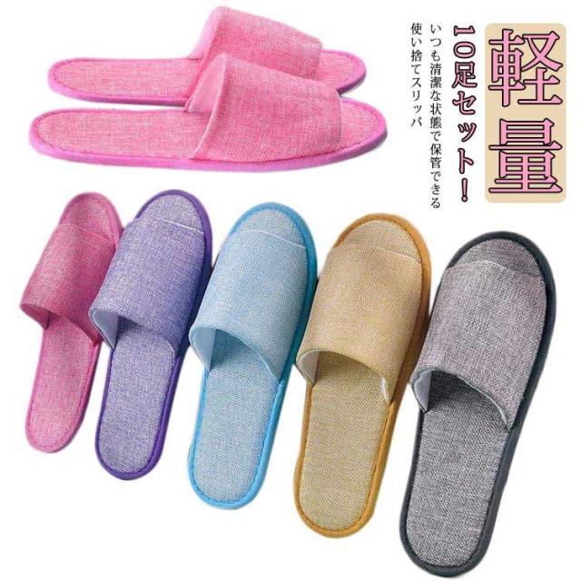 使い捨てスリッパ 10足セット メンズ レディース 麻 軽量 業務用 来客用 旅行用 ホテル用 入院 介護 防災 エステ用品 滑り止め サロン ホテル 宿泊施設 男性 女性 旅行 出張 無地 シンプル 携帯用 10足組 コンパクト 軽い スリッパ 送料無料