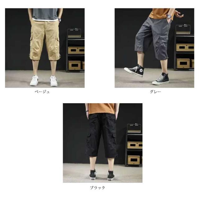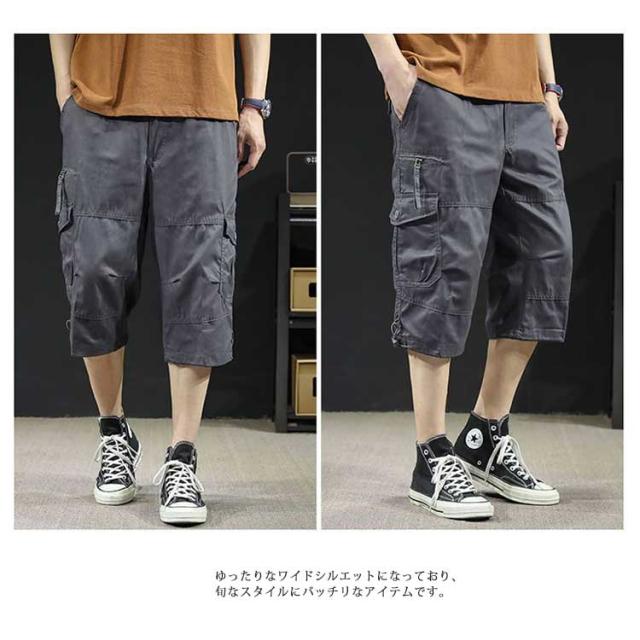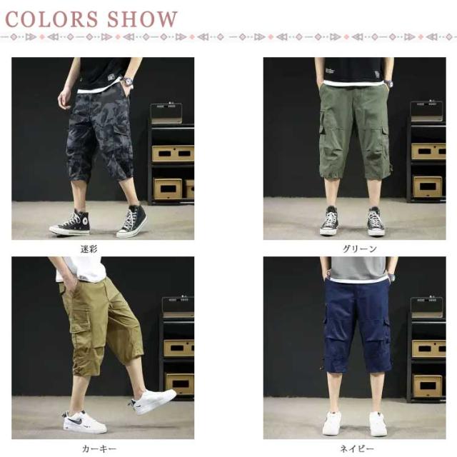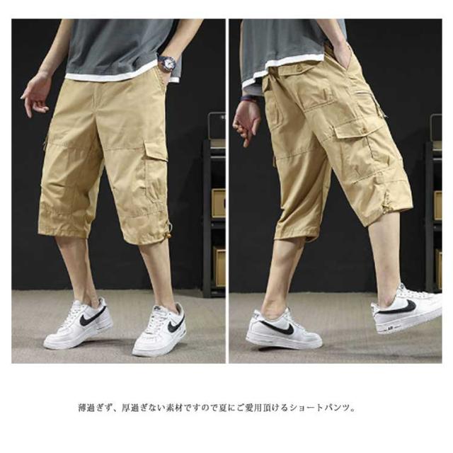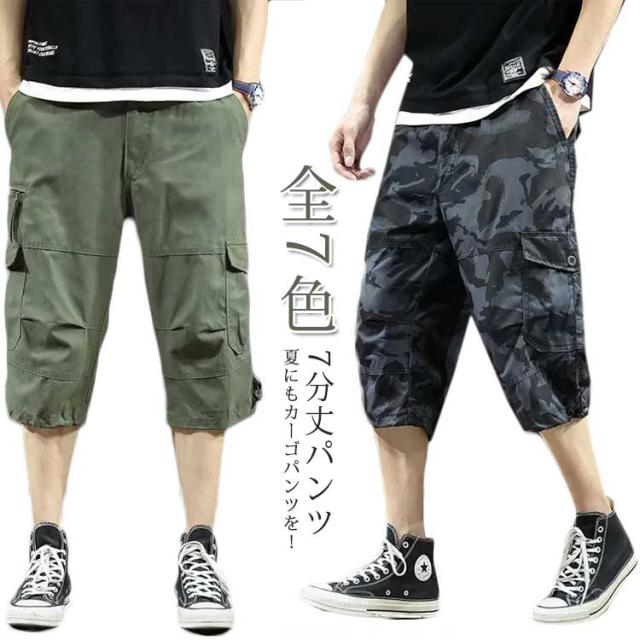 カーゴパンツ メンズ 7分丈パンツ ハーフ ショートパンツ 夏 クロップドパンツ カジュアル おしゃれ ミリタリー 迷彩 アウトドア 七分丈 おしゃれ 夏 膝下 体型カバー ウエストゴム ポケット付き 大きいサイズ ゆったり プレゼント ギフト 送料無料