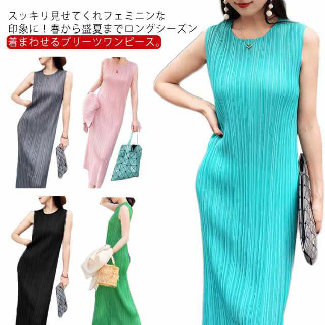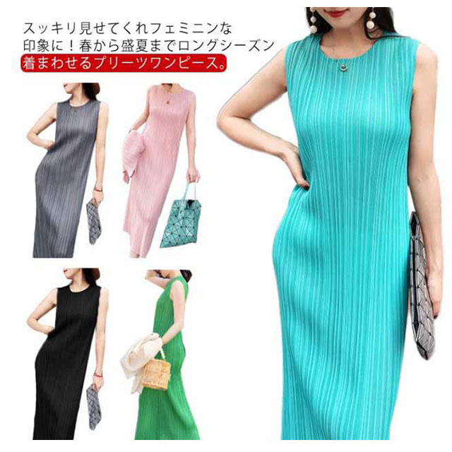 ワンピース 夏 レディース プリーツワンピース ロング リゾートワンピ 夏ワンピ ロングワンピース 着?せ ノースリーブ 全8色 シンプル カジュアル おしゃれ リラックス 夏服