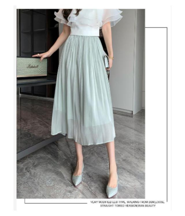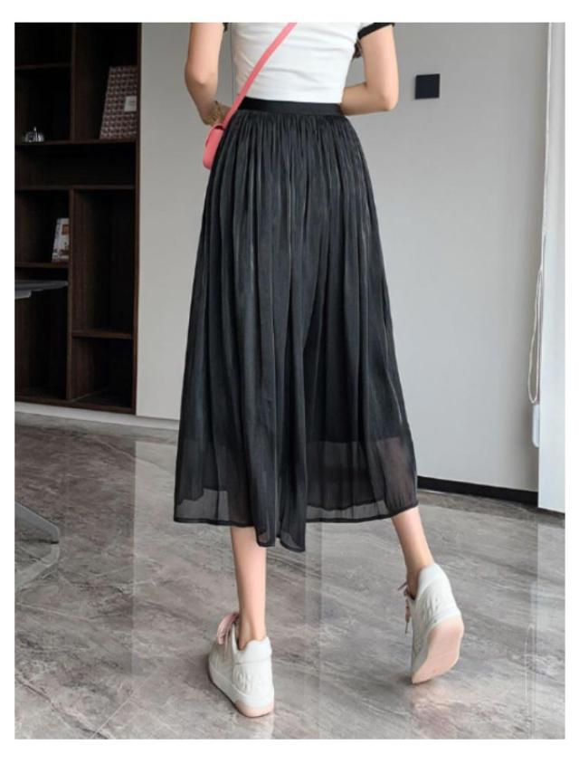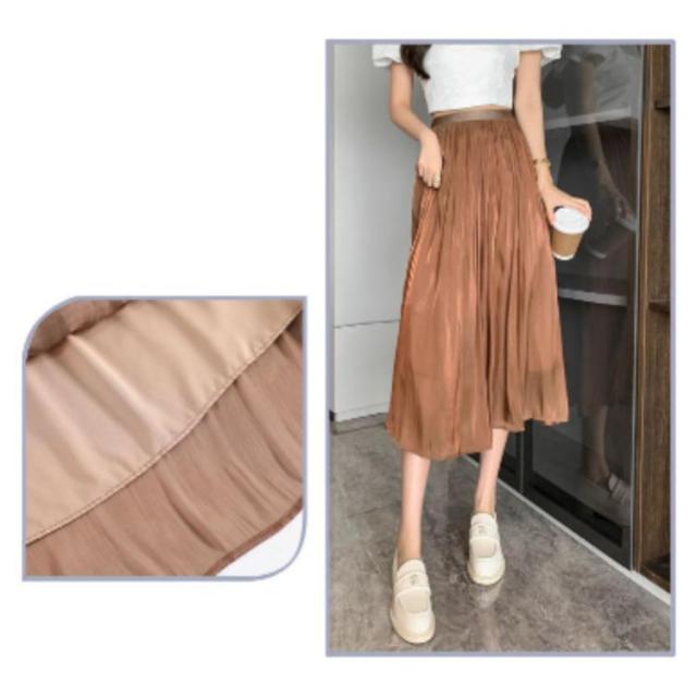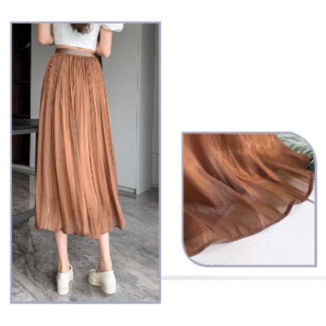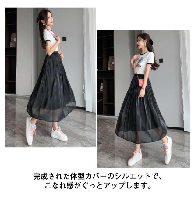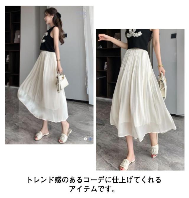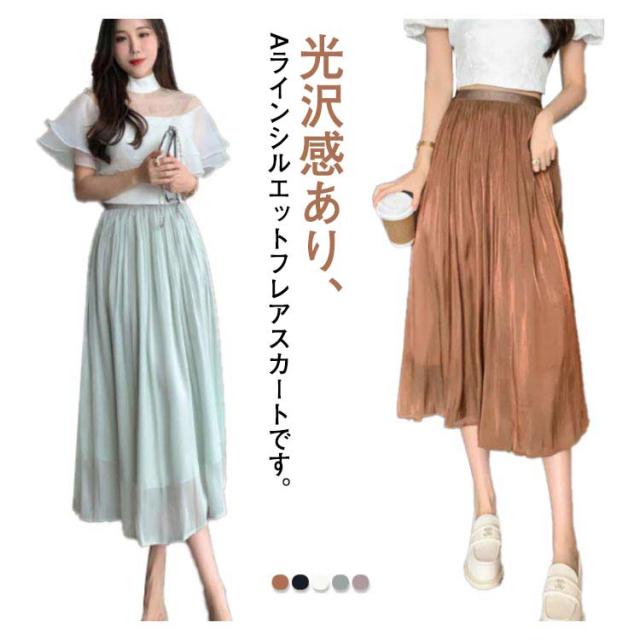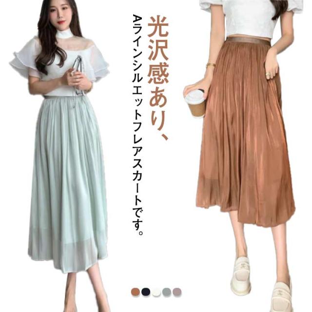 光沢 スカート ロングスカート ミモレスカート スカート ミモレ丈 フレアスカート 膝下 ハイウェスト Aラインスカート 春 夏 つや感 ゆったり 着痩せ S M L XL