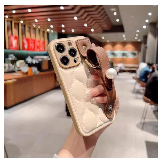 | 【2個セット! ケース式*ハンドル式】 【キルティング生地が柔らかなiPhoneケース】 優しい手触りのPUレザーを使用。 ケース内側の素材にもこだわり、iPhone本体を優しく保護します。 やさしい色合いがあらゆる年代にオススメです。 | |