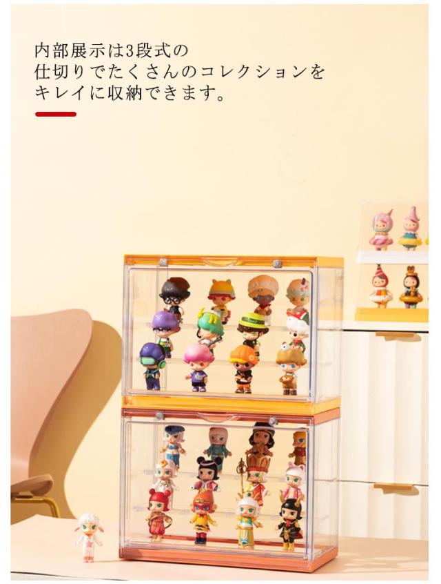フィギュアケース 収納ケース コレクションケース コレクション ボックス クリアケース 透明 展示ケース マグネット扉付き 積み重ね可能 フィギュア 三段式 クリア ケース ボックス コレクションケース コレクションボックス