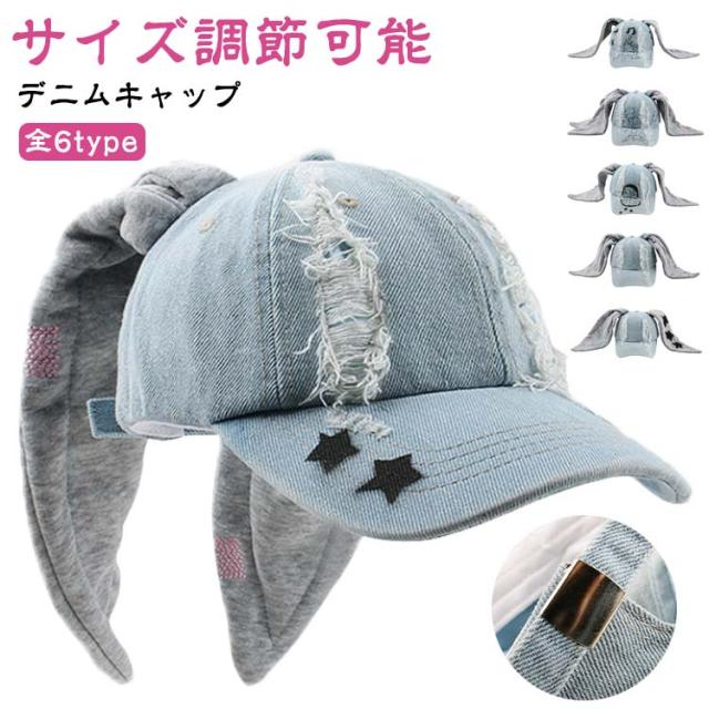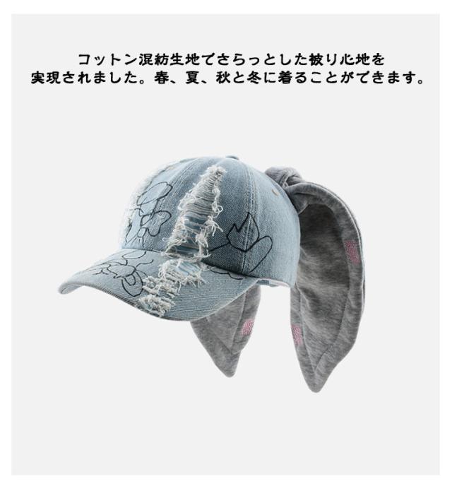 帽子 レディース キャップ ウサ耳付き 兎 K-POP 可愛い デニム キャップ KPOPアイドル CAP サイズ調節可能 おしゃれ かっこいい ストリート ダンス 衣装 ガールズ 韓国アイドル ファッション 大人気 全6種 フリーサイズ うさぎ ウサギ耳 送料無料