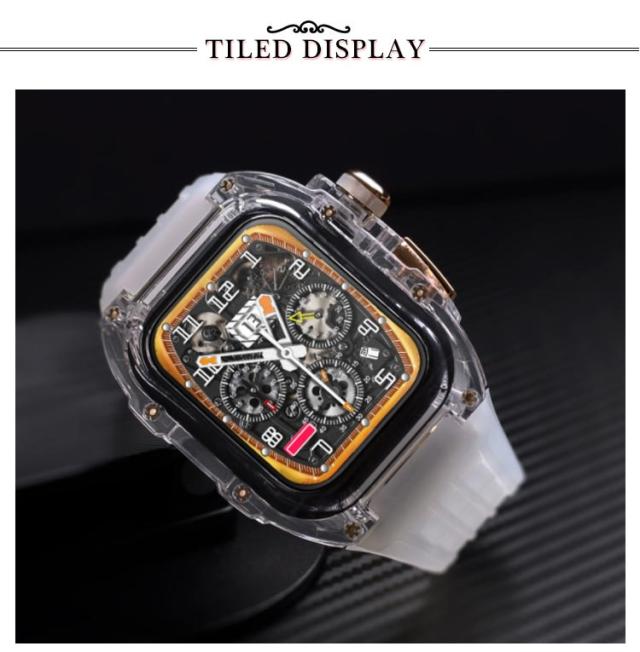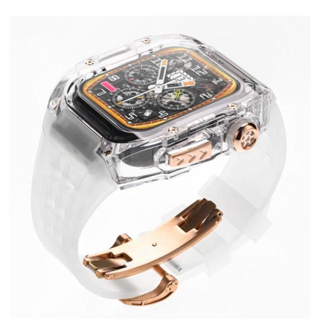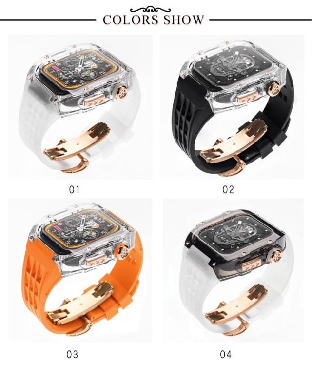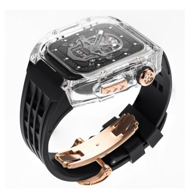 アップルウォッチ apple watch case バンド メンズ ケース フッ素ラバー カバー ベルト 一体型 クリア ピンクゴールドバタフライバックル レディー スポーツ おしゃれ かわいい むれない series8 7 6 SE 5 4用 44mm 45mm用 アウトドア 保護 頑丈 送料無料