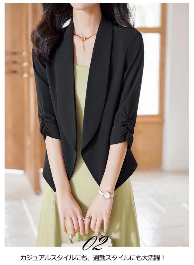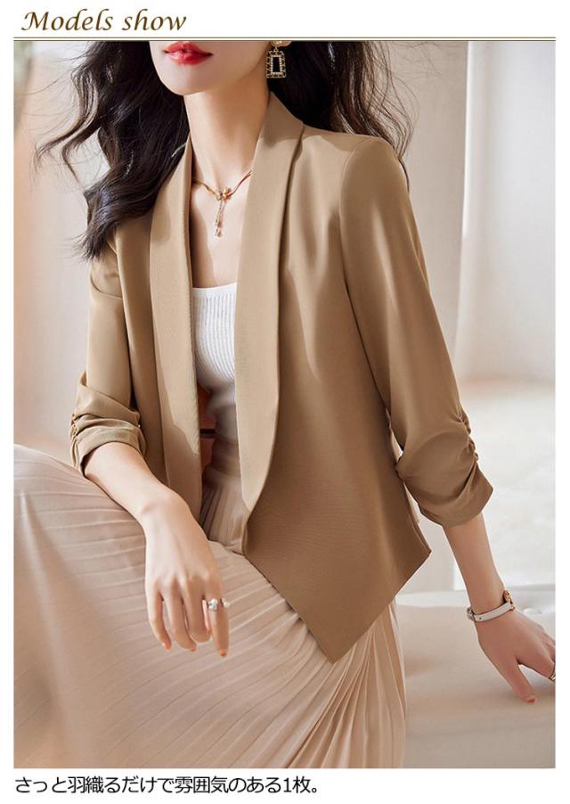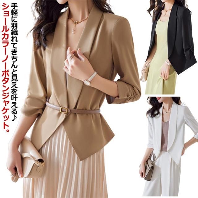 ジャケット ショールカラーノーボタン テーラードジャケット レディース ボレロジャケット 春 夏 羽織り フォーマル 結婚式 親族 二次会 サマージャケット 薄手 ボレロ カーディガン シンプル 通勤 仕事 入学式 送料無料