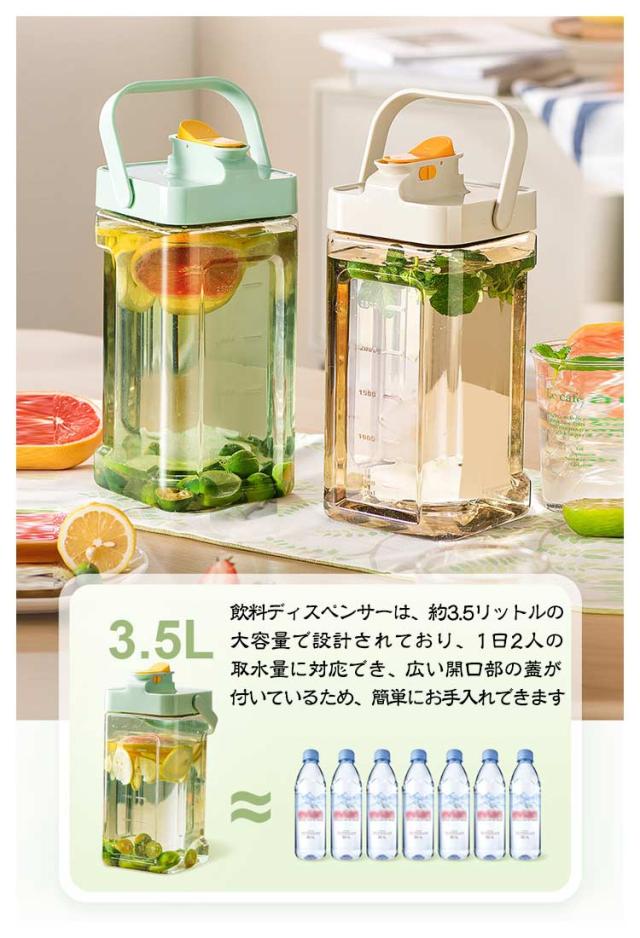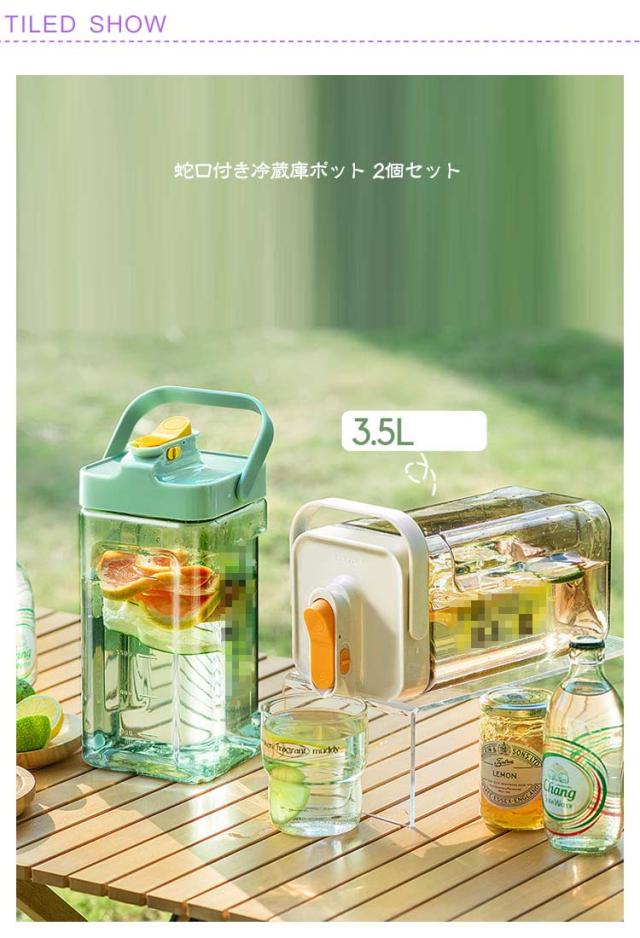 2個セット 冷蔵庫ポット ドリンクピッチャー 蛇口付き 大容量 3.5L 冷水筒 ピッチャー 水タンク 麦茶ポット ティーポット 飲料水バケット ドリンクピッチャー フルーツティーポット 耐熱 保冷 透明 密封性がよい 洗いやすい 屋外 家庭 お店用 飲料水 お茶 炭酸 水出し
