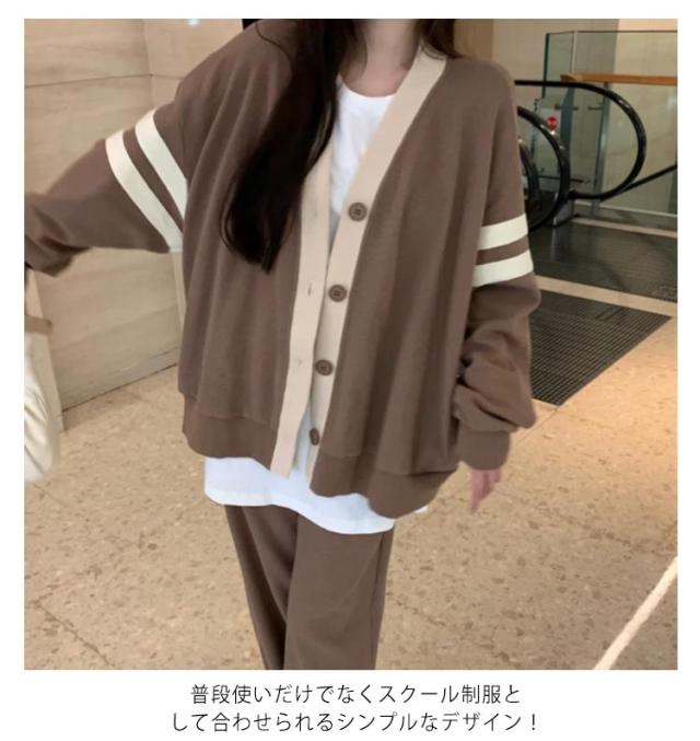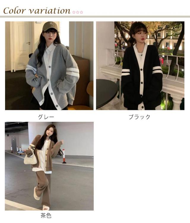 ニットカーディガン ライン入り レディース ニットカーデ 秋冬 制服 カーディガン 羽織り 学生服 女子 中学生 高校生 スクールカーディガン Vネック オーバーサイズ 入学 通学 カジュアル 私服 ニット トップス グレー 茶色 ブラック 【送無】