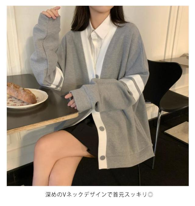 | シックな配色のライン入りで、なオーバーサイズニットカーディガン。 ほど良い厚みのある素材なのでオールシーズン着れる万能アイテム。 ゆとりのあるオーバーサイズシルエットなので自然な体型カバーにもなります。リラックスして着れるほど緩く柔らかなシルエットです。 深めのVネックデザインで首元スッキリ◎ 普段使いだけでなくスクール制服として合わせられるシンプルなデザイン! | |