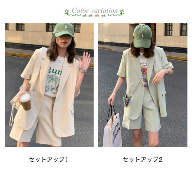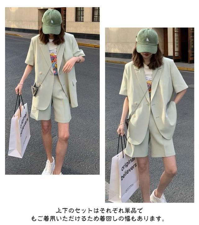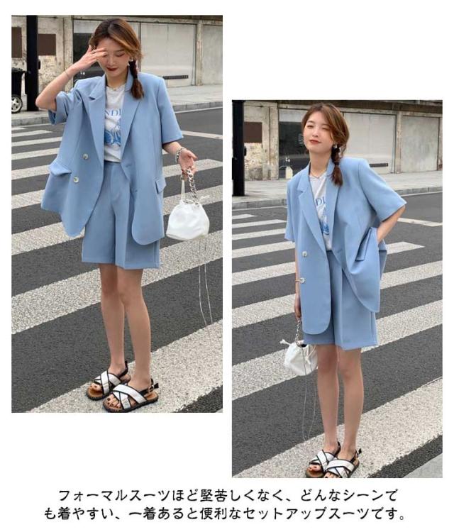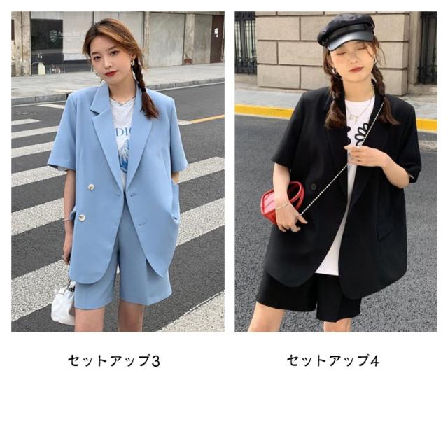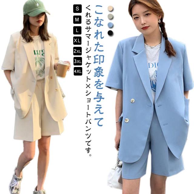 セットアップ レディース 春 夏 半袖 ジャケット テーラードジャケット上下セット スーツ ショートパンツ 短パン 半袖アウター パンツスーツ きれいめ カジュアル 大人 20代 30代 40代 OL ママ S M L XL 2XL 3XL 4XL