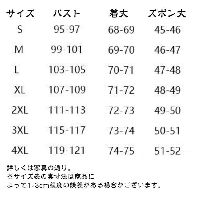 | サイズ | S M L XL 2XL 3XL 4XL |