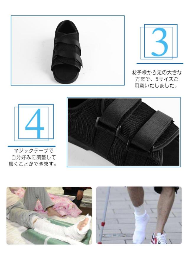| ・歩行時のギプスの汚れを防ぐ、ギプス用オールシーズンサンダルです。 ・通気性の高いメッシュ素材を採用したサンダルタイプです。 ・履くのも脱ぐのも簡単!マジックテープ式でオープンに開くので簡単に装着できます。 ・靴底は衝撃吸収、滑り止めの構造されているため安全、安心に履くことができます。 ・靴の幅を広く設計しているのでギプスの足もしっかりと入ります! ・左右兼用 ・マジックテープで自分好みに調整して履くことができます。 ・お子様から足の大きな方まで、5サイズご用意いたしました。 ※両足必要な方は2つお買い求めください。 | |
