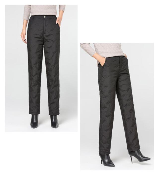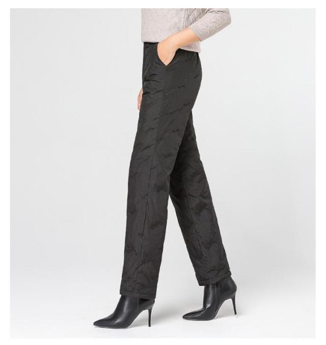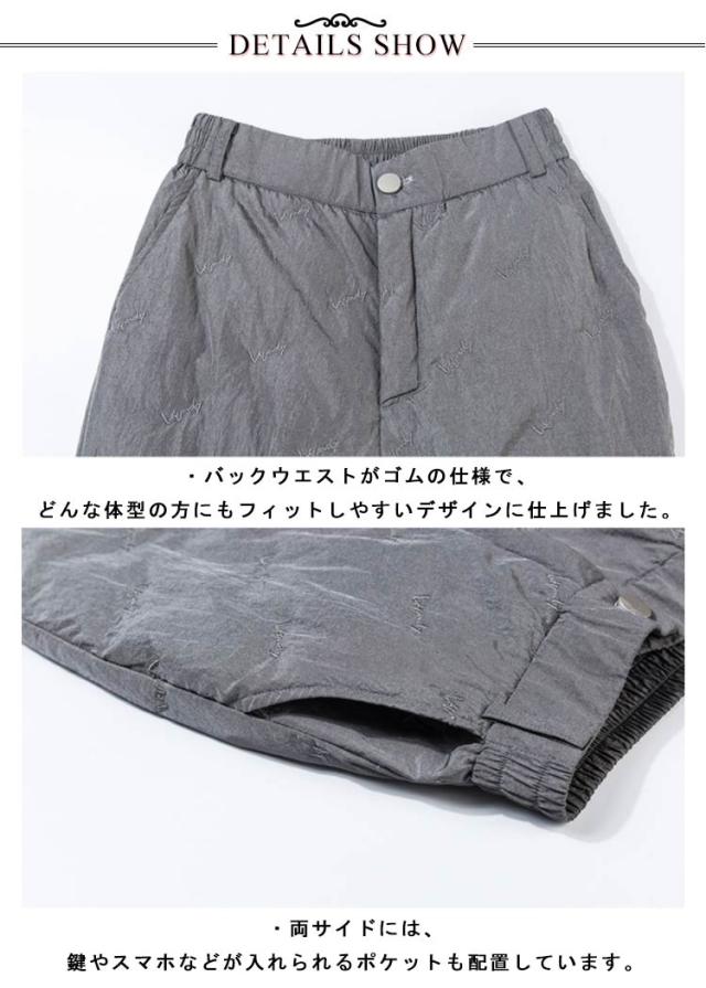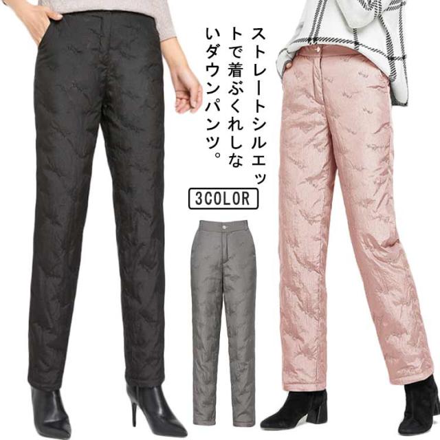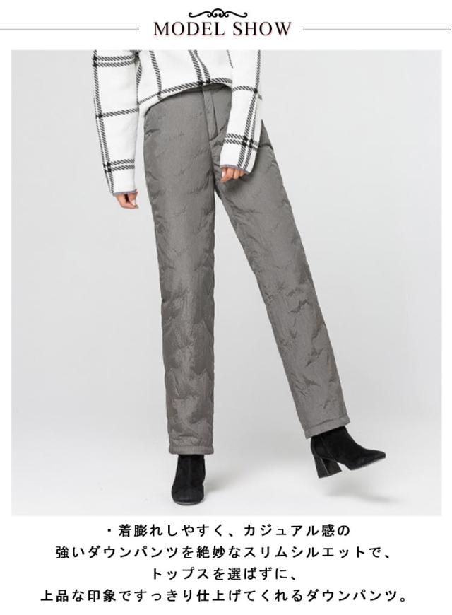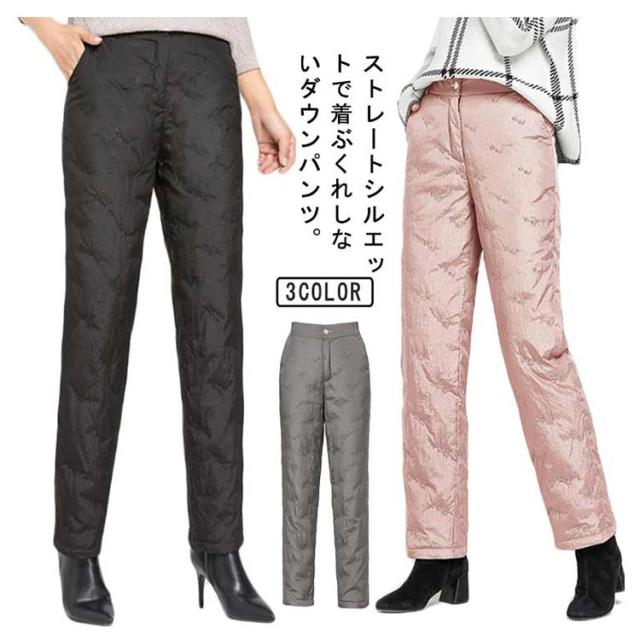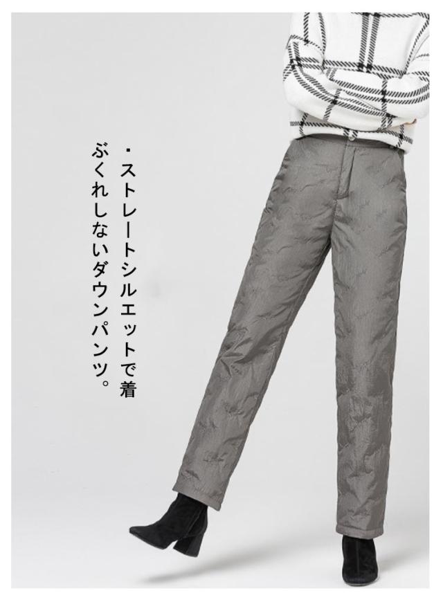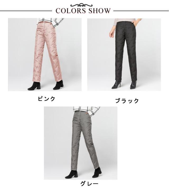 ダウンパンツ レディース ダウン 暖かい 防寒 防風 防水 ハイウェスト ウェストゴム ウォッシャブル 刺しゅう ポケット付き フルレングス 丈 厚手 美脚 通勤 上品 上質 エレガント ミセス 30代 40代 50代 60代 70代 シニア 母の日 冬