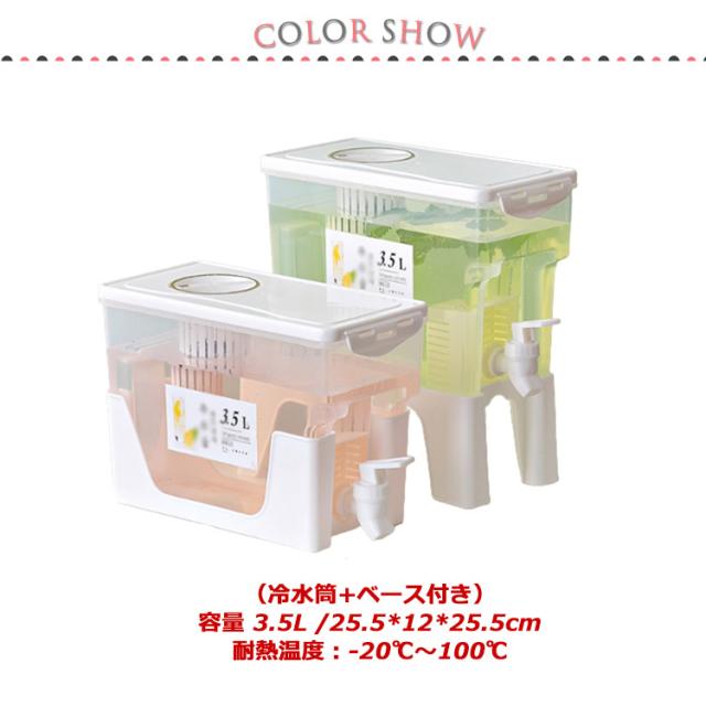 | サイズについての説明 | (冷水筒+ベース付き) 容量 3.5L /25.5*12*25.5cm 耐熱温度:-20℃〜100℃ |