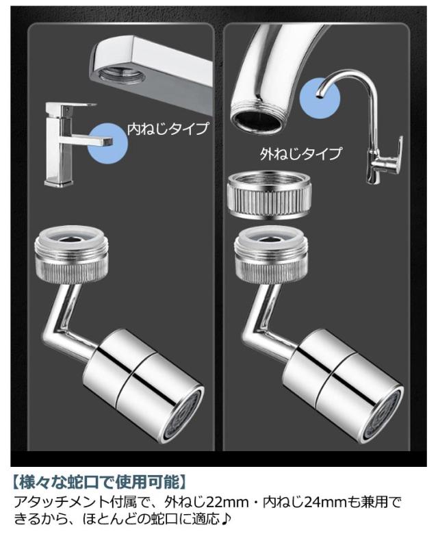 | サイズについての説明 | 適合蛇口タイプ 外ネジタイプ 22mmに適合。 内ねじタイプ 24mmに適合 |