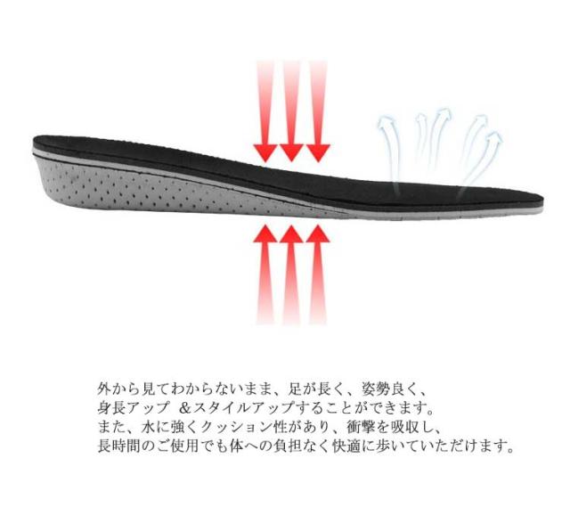 | 1.5cm/2.5cm/3.5cm/4.5cmアップ!男女兼用シークレットインソール 中敷きとしてお手持ちの靴に入れるだけで簡単にヒールアップしてくれます。 外から見てわからないまま、足が長く、姿勢良く、身長アップ &スタイルアップすることができます。 高さは選べる3サイズ:1.5cm/2.5cm/3.5cm/4.5cm 通気性がよく、長時間履いていても蒸れづらく気になる臭いがおさえられます。また、水に強くクッション性があり、衝撃を吸収し、長時間のご使用でも体への負担なく快適に歩いていただけます。 インソール裏のガイド線に沿ってハサミでカットして簡単にサイズ調整できます。 衝撃吸収型のソフトクッションを搭載しておりますので、通勤時や立ち仕事など様々なシーンでお使いいただけます。 選べる2タイプ、ニーズに合わせてお選びいただけるのもうれしい♪ | |