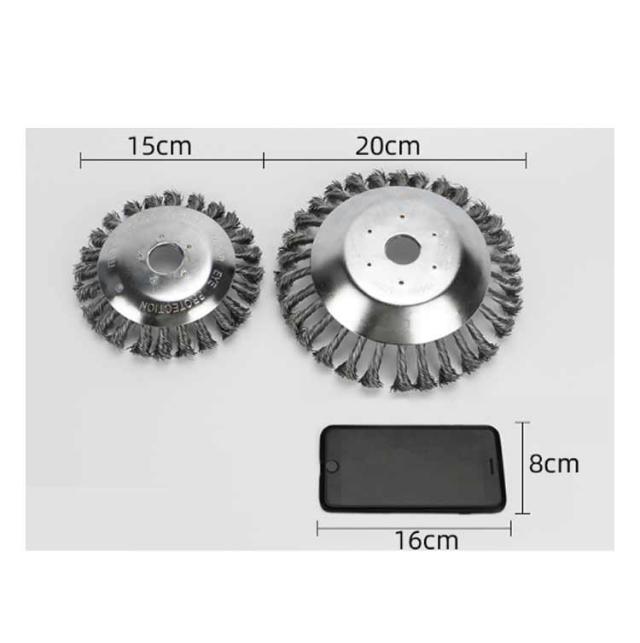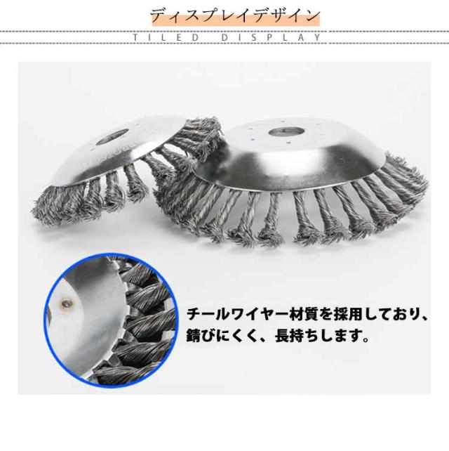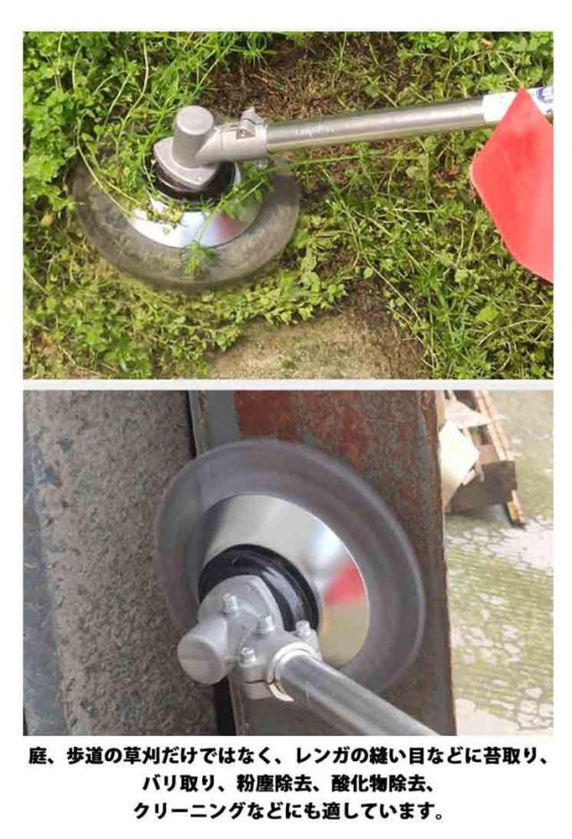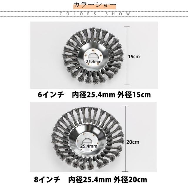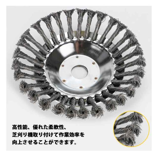 | 錆除去、バリ取り、雑草クリーニングなどに大活躍! チールワイヤー材質を採用しており、錆びにくく、長持ちします。 高性能、優れた柔軟性、芝刈り機取り付けて作業効率を向上させることができます。 庭、歩道の草刈だけではなく、レンガの縫い目などに苔取り、バリ取り、粉塵除去、酸化物除去、クリーニングなどにも適しています。 石やハードブロックを打つとき、それは正常に動作することができます。 | |