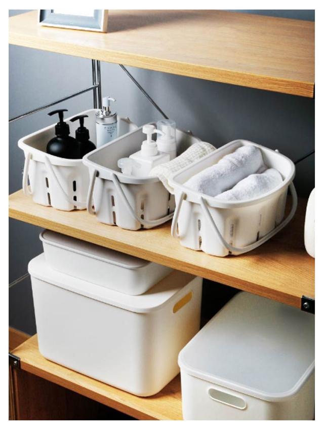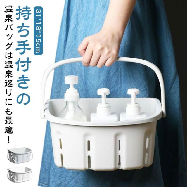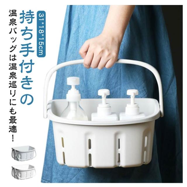 | 持ち手付きの温泉バッグは温泉巡りにも最適! 持ち運びできる収納用品は、化粧品やメイクグッズを入れてコスメボックスとしても便利です。 シンプルな収納ボックスは、コスメ収納やキッチン収納、文房具、事務用品など、マルチに使える収納グッズです。 お部屋にとけ込むナチュラルカラーは、他のインテリアとも馴染みやすい! | |