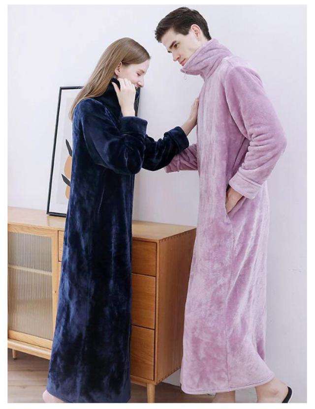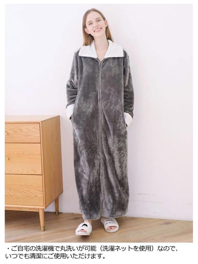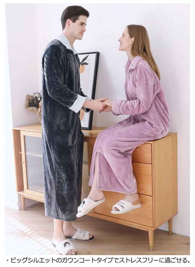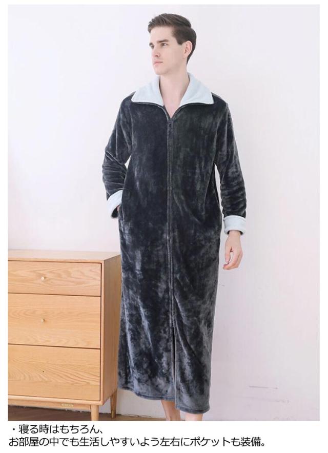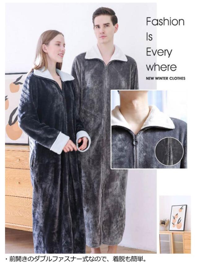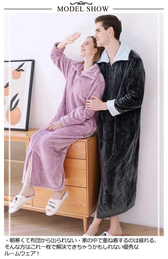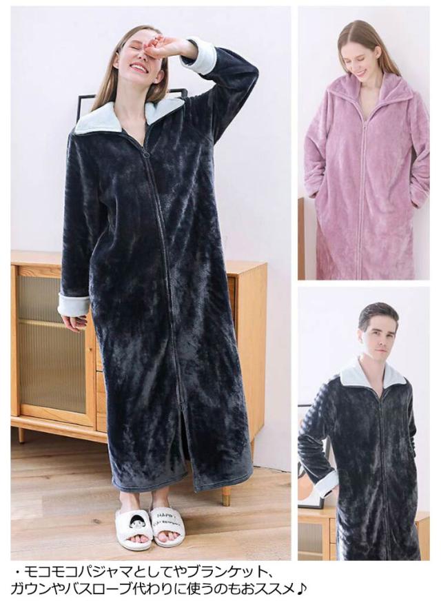 着る毛布 ルームウェア もこもこ あったか フランネル パジャマ 部屋着 ガウン メンズ レディース マタニティ ナイトウェア 大きいサイズ 長袖 ジップアップ スタンドカラー 立ち襟 ポケットあり 冬用 冷え対策 軽量 節電
