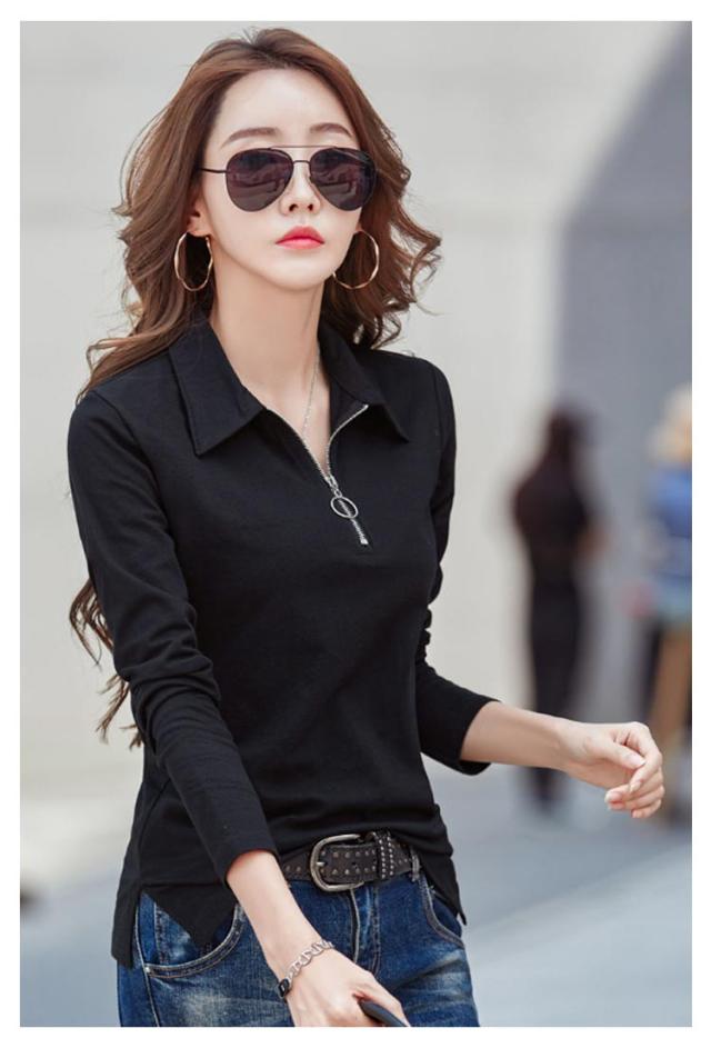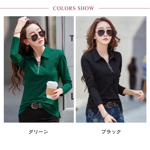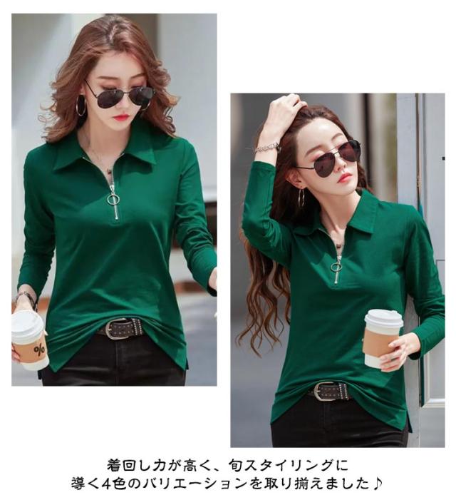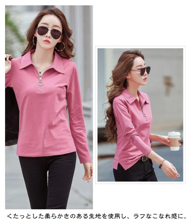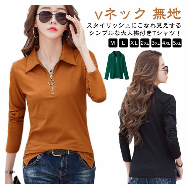 長袖tシャツ Tシャツ レディース 長袖 ポロシャツ レディース 春 秋 冬 カットソー Vネック とろみ スキッパー ハーフジップ タイト スリム OL 通勤 通学 ビジネス オフェス 大きいサイズ 白 黒 ゆったり カジュアル 無地