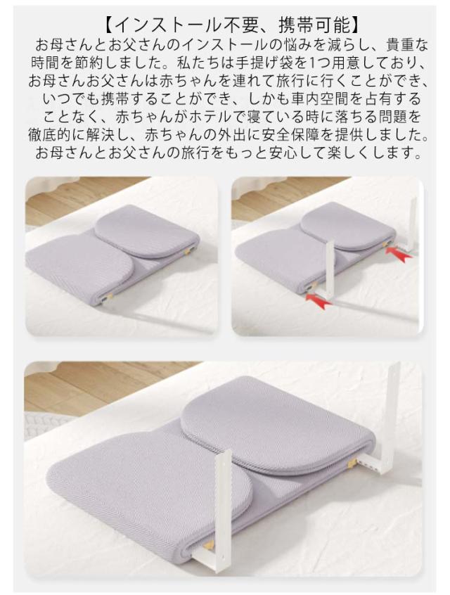 | 【新サイズ、高さ調節可能】。ベッドガードの高さはマットレスの厚さに合わせて自由に調節できます。調節可能な高さは31CMで、ベッドガードをベッドにぴったりフィットさせ、隙間がないようにすることができます。超高サイズは赤ちゃんが立って転ぶのを防ぎ、赤ちゃんが寝てベッドから落ちるのを防ぐことができます。市販されているほとんどのベッドタイプ(皮質ベッド、バリアベッド、ボックスベッド、平板ベッド、木製ベッド、ヨーロッパベッドなど)に適しています。 【折りたたみ式デザイン】ママとパパはまだベッドの片付けに悩んでいるの?3254人のお母さんを調査した結果、76%のお母さんたちがベッドガードに折り畳み収納機能があると便利だと答えていました。折りたたみステップは簡単で、わずか10秒で完成します。お母さんとお父さんは掃除中に簡単に収納でき、家庭のスペースを取らずに、散らかった生活に別れを告げることができます。ママとパパがより簡単に仕事を終え、効率的な状態を保つのを助けます。 【高強度鋼管、内蔵防撞綿】鋼管の厚さを強化し、硬度の高い鋼管材質を使用する、製品の使用寿命を高め、しかも全体の安定性をより高くした。赤ちゃんの安全に絶対的な保障を提供しています。衝突防止綿を内蔵することで、赤ちゃんが寝ている間に寝返りを打って衝突することを防止でき、赤ちゃんに安全で信頼性の高い睡眠環境を提供することができます。 【高品質生地】赤ちゃんの安全のために、良質で安全なニット生地を使用しており、ニット生地の特徴は肌触りが繊細で、摩耗に強く、洗浄に強いです。すべての針織布は私たちの厳格な品質検査を経て、赤ちゃんの安全は私たちの第一の任務です。お母さんたちはもう赤ちゃんがベッドのフェンスを噛む心配はありません。メリヤス布は取り外し可能で、メリヤス布には弾力性があるので、取り外しの過程でママたちがメリヤス布を壊す心配がなく、私たちの製品の品質はママたちの信頼を勝ち取ることができます。 【インストール不要、携帯可能】お母さんとお父さんのインストールの悩みを減らし、貴重な時間を節約しました。私たちは手提げ袋を1つ用意しており、お母さんお父さんは赤ちゃんを連れて旅行に行くことができ、いつでも携帯することができ、しかも車内空間を占有することなく、赤ちゃんがホテルで寝ている時に落ちる問題を徹底的に解決し、赤ちゃんの | |