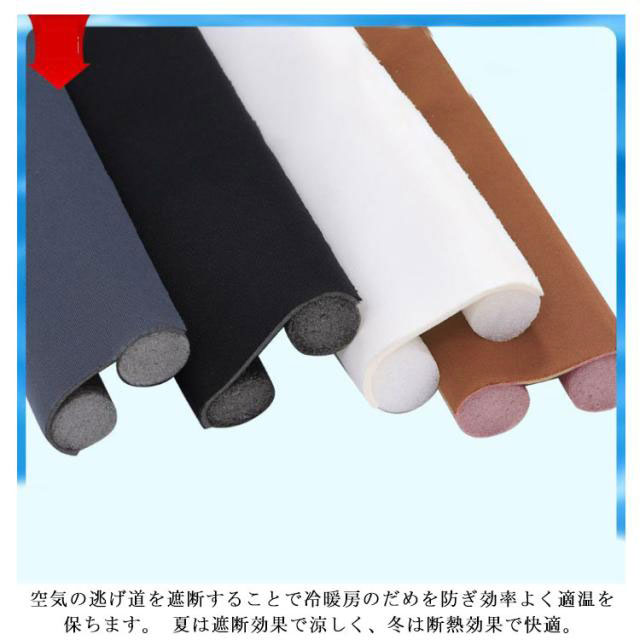 | スポンジ素材を使用!この隙間テープは窓、ドア、サッシ、玄関、トイレ、自動ドアなどのすきま風をストップ。 防音、防虫、ホコリ防止、気密性アップなど様々なメリットがあって、幅広く使えます。花粉、ホコリ、ゴキ、蟻や虫などの侵入を防ぎます。 木、金属、塗装枠など、さまざまなドア枠に貼りつけられる汎用タイプです。ドアや窓、キャビネット等に防音テープを隙間を埋める事で、隙間からの音や風を手軽に軽減し。家具や建具にの衝撃をやわらげて、戸当たり音を静かにします、そして、外からの音漏れを防ぎ、静かな生活に! 空気の逃げ道を遮断することで冷暖房のだめを防ぎ効率よく適温を保ちます。 夏は遮断効果で涼しく、冬は断熱効果で快適。 摩擦に強く、しなやかでコシのある素材がすきまをしっかりとふさいで、冷暖房効率をアップします。 エアコンの冷暖気を外に逃がさない(窓やドアのすきまから漏れることを防ぐ)ことで、エアコンの効き目をよくして、電力消費を抑えます。 外からの音漏れを防ぎ、夜はぐっすりと眠れます。夜遅く帰って音を少し出しても、家族を起ったりしません。 | |