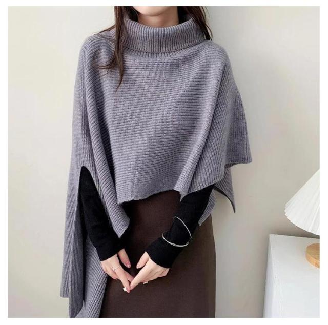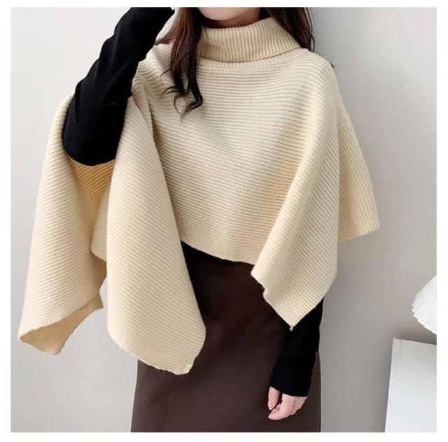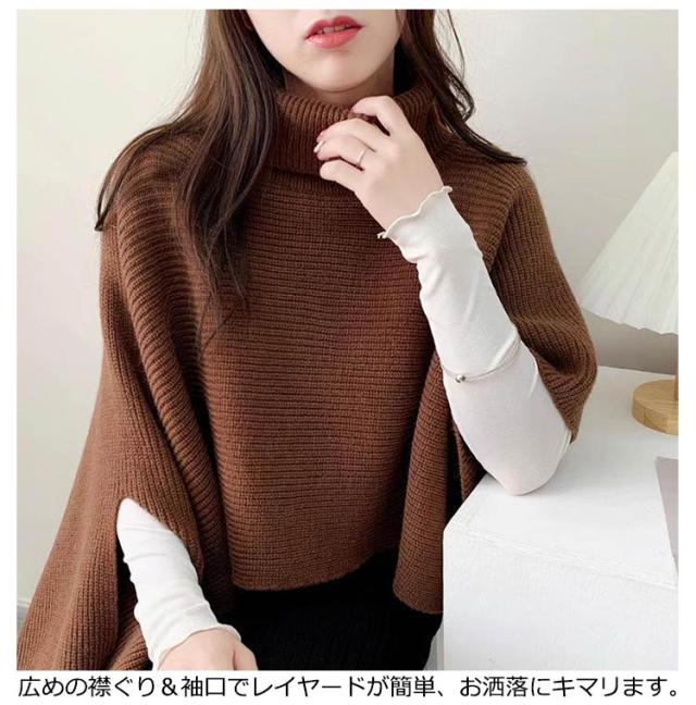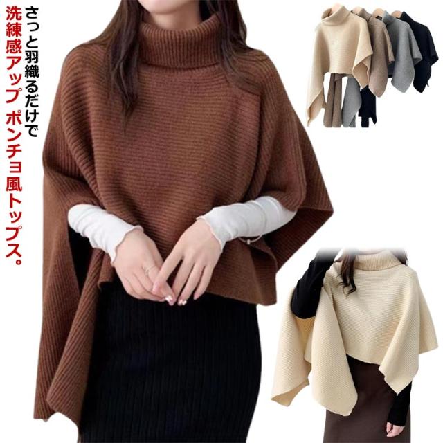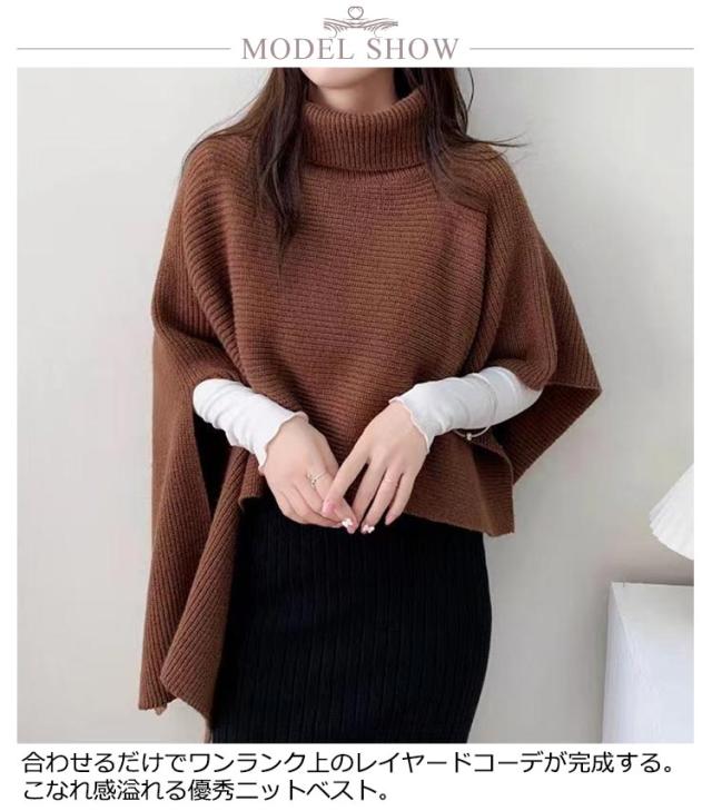 ニット セーター レディース ニットベスト タートルネック ニット ベスト ニットトップス 半袖 ハイネック アシンメトリー 変形 イレギュラー マント ショール レイヤード 重ね着 ポンチョ ジレ 秋 冬 ケープ プルオーバー アウター