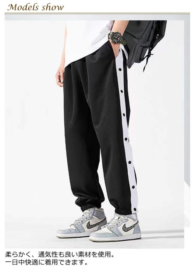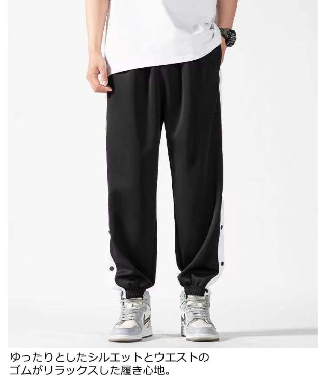 バスケットボールパンツ キッズ ジュニア 大人 メンズ レディース 春夏秋冬 バスパン バスケパンツ バスケットパンツ スナップボタン 裾ボタン サイドボタン サイドライン 長ズボン ロングパンツ ジャージ 下 男の子 女の子 男性 女性