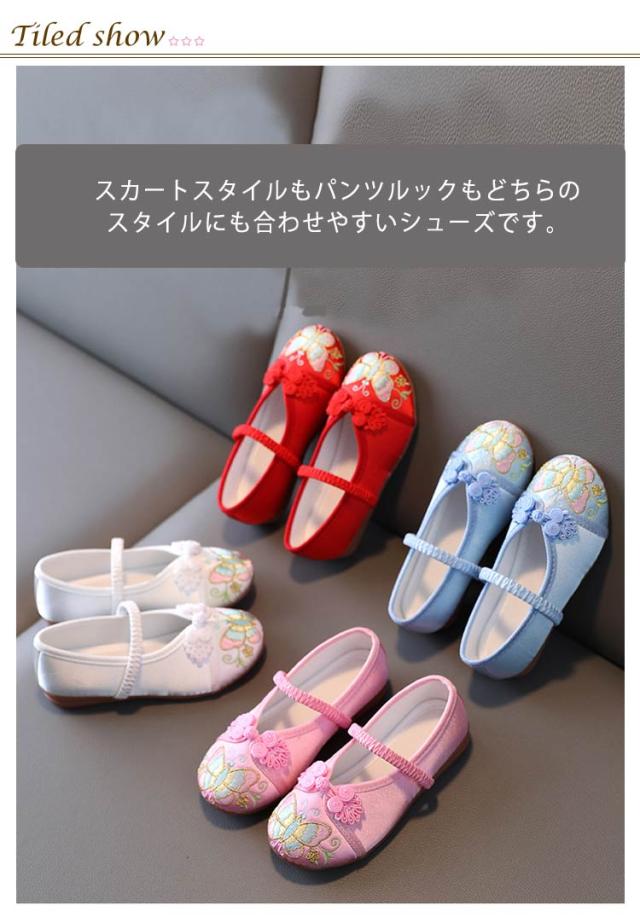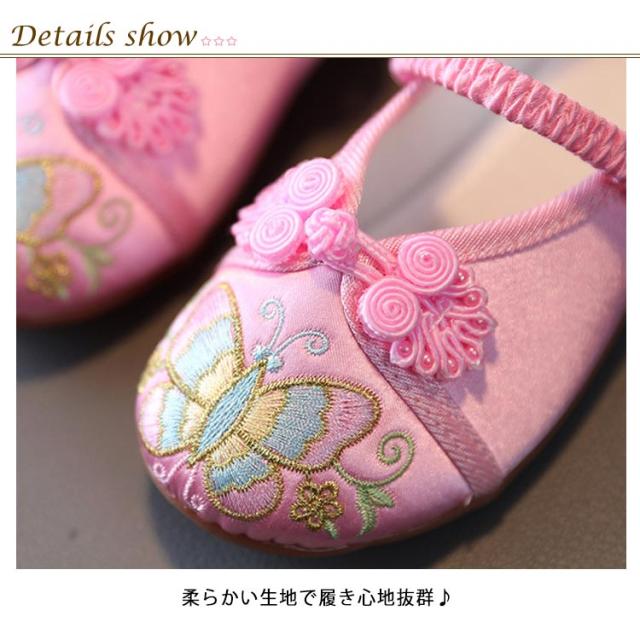 七五三 靴 キッズ 女の子 草履 歩きやすい 痛くない 蝶 チョウ 刺繍 赤 ピンク ブルー ホワイト 子供靴 ベビー 七五三の靴 ぺたんこ フラットシューズ 和柄の靴 和装 送料無料