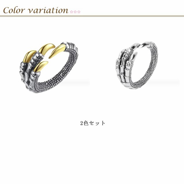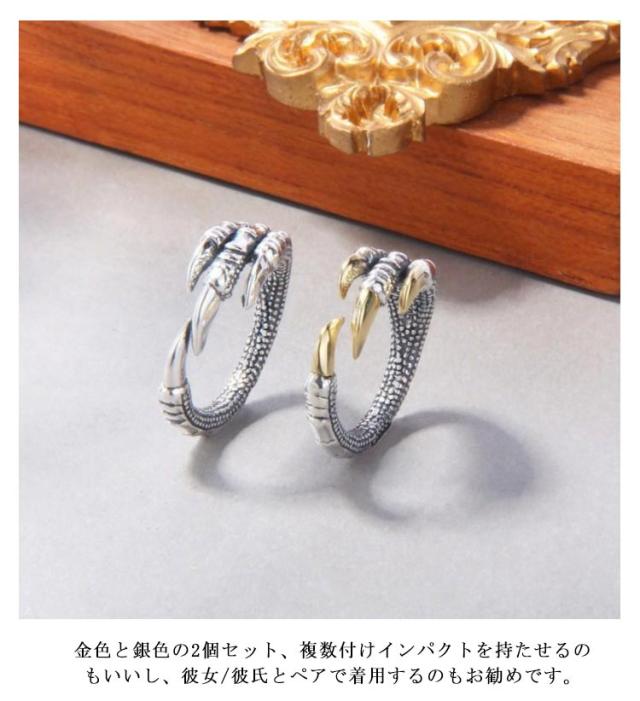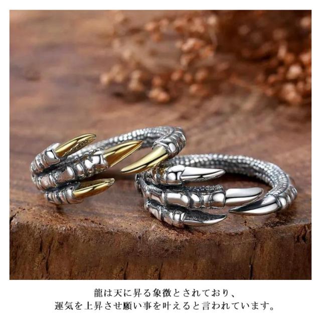 リング 龍 爪モチーフ 2個セット 指輪 辰年 竜 リング 2024年干支 アクセサリー 縁起物 龍の爪 ドラゴンクロー 幸運 風水 フリーサイズ メンズ レディース ペアルック 恋人同士