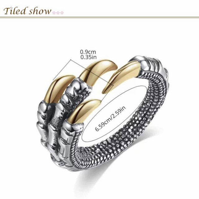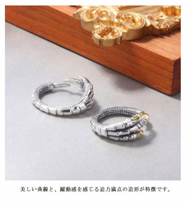 | 竜の爪をモチーフにした指輪。 龍は天に昇る象徴とされており、運気を上昇させ願い事を叶えると言われています。 神格高く、喜兆のシンボルでもあり、身につけることで開運、祈福、幸運、成功がもたらされます。 美しい曲線と、躍動感を感じる迫力満点の造形が特徴です。 シンプルながらも注目を浴びること間違いなしのアイテムで、人と被らないファッションを楽しむことができます。 金色と銀色の2個セット、複数付けインパクトを持たせるのもいいし、彼女/彼氏とペアで着用するのもお勧めです。 | |