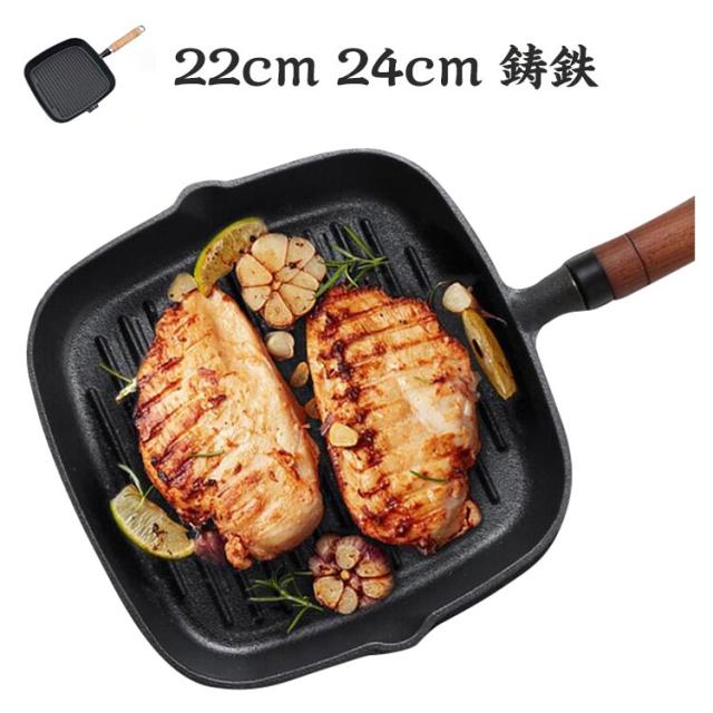 グリルパン 角型 鋳鉄 グリルフライパン スクエアフライパン 22cm 24cm 調理器具 調理用品 フライパン 鉄 鍋 鉄鍋 四角形 正方形 ガス火対応 スクエア フライパン 送料無料